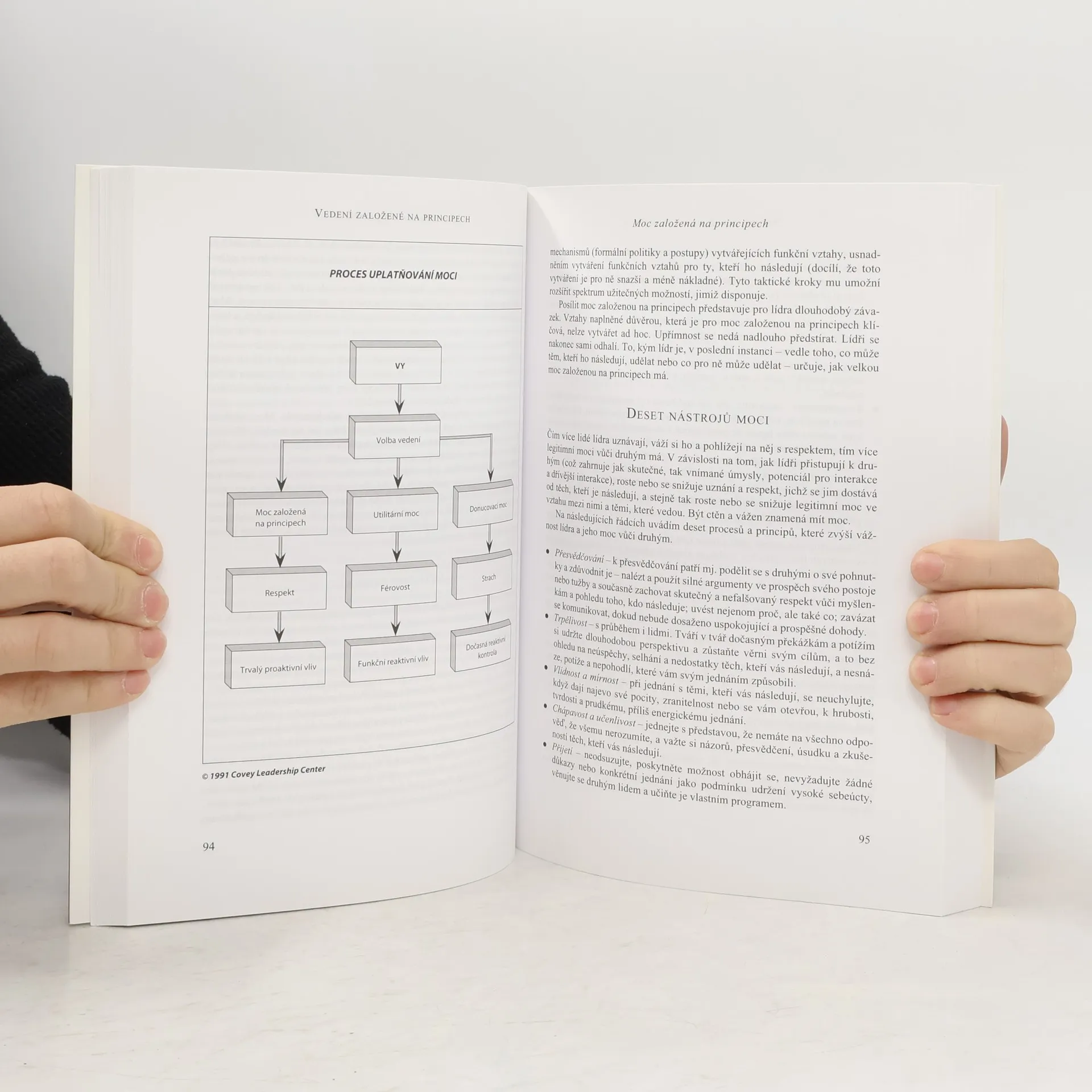 Další bestseller světoznámého odborníka na vedení lidí představuje nové paradigma, dalece přesahující klasické techniky vedení založené na vnějších faktorech. Zatímco hodnoty, okolnosti a životní zaměření se mohou měnit, principy jsou kompasem, který nám vždy a za všech okolností ukazuje správnou cestu jak v osobním, tak pracovním životě. Naučit se novému způsobu vedení, jehož podstatu výstižně vyjadřuje rčení „Dejte člověku rybu a nasytíte jej na jeden den, naučte ho rybařit a nasytíte jej na celý život“, není snadné a vyžaduje nemalé úsilí. Ale stojí to za to.