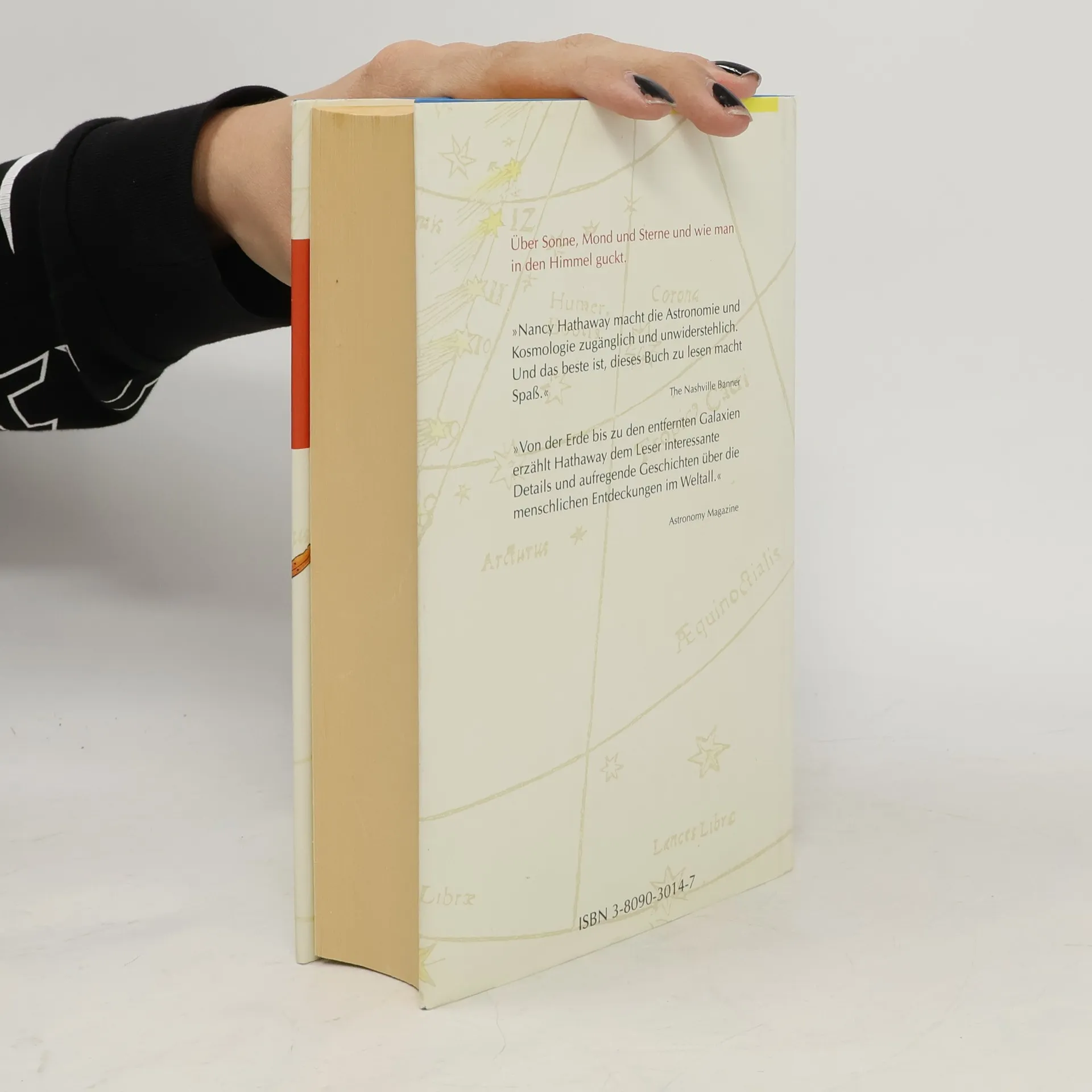 Am 11. August 1999 ereignet sich ein astronomisches Jahrhundertereignis: eine totale Sonnenfinsternis, die über den Süden Deutschlands sichtbar ist. In Nancy Hathaways Wegweiser durch das Universum erfährt man, wie das Universum vor unvorstellbaren Jahrtausenden begann und wie das Sonnensystem sowie die Erde entstanden. Der Mensch blickte in den Himmel und suchte nach Botschaften, um die nächtliche Schönheit zu verstehen. Von verschiedenen Kulturen aus, wie China und Europa, schauten Menschen in den Himmel, erstellten Karten und bauten Teleskope. Wissenschaftler wie Kopernikus, Galilei, Kepler, Newton und Einstein erkannten und hinterfragten das Universum, trotz Verfolgung und Widerständen. Das Buch gliedert sich in vier Teile: es gibt einen Überblick über die Geschichte des Universums, beschreibt unser Sonnensystem und die Planeten, und beleuchtet die Milchstraße sowie die Astronomie. Fragen zu Sternen, Galaxien, Quasaren und schwarzen Löchern werden behandelt. Zudem werden Sternbilder und deren Deutungen vorgestellt. Mit zahlreichen Bildern, Zitaten aus der Weltliteratur und kunstvollen Beispielen bietet dieses Werk ein kenntnisreiches Kaleidoskop über den Himmel. Spielerisch und zuverlässig vermittelt es umfassendes Wissen über eine weitreichende Welt, die unsere Vorstellung übersteigt. Nancy Hathaway, in Washington geboren, lebt als Autorin und Journalistin in New York und hat zahlreiche Bücher und Artikel zu naturwissen