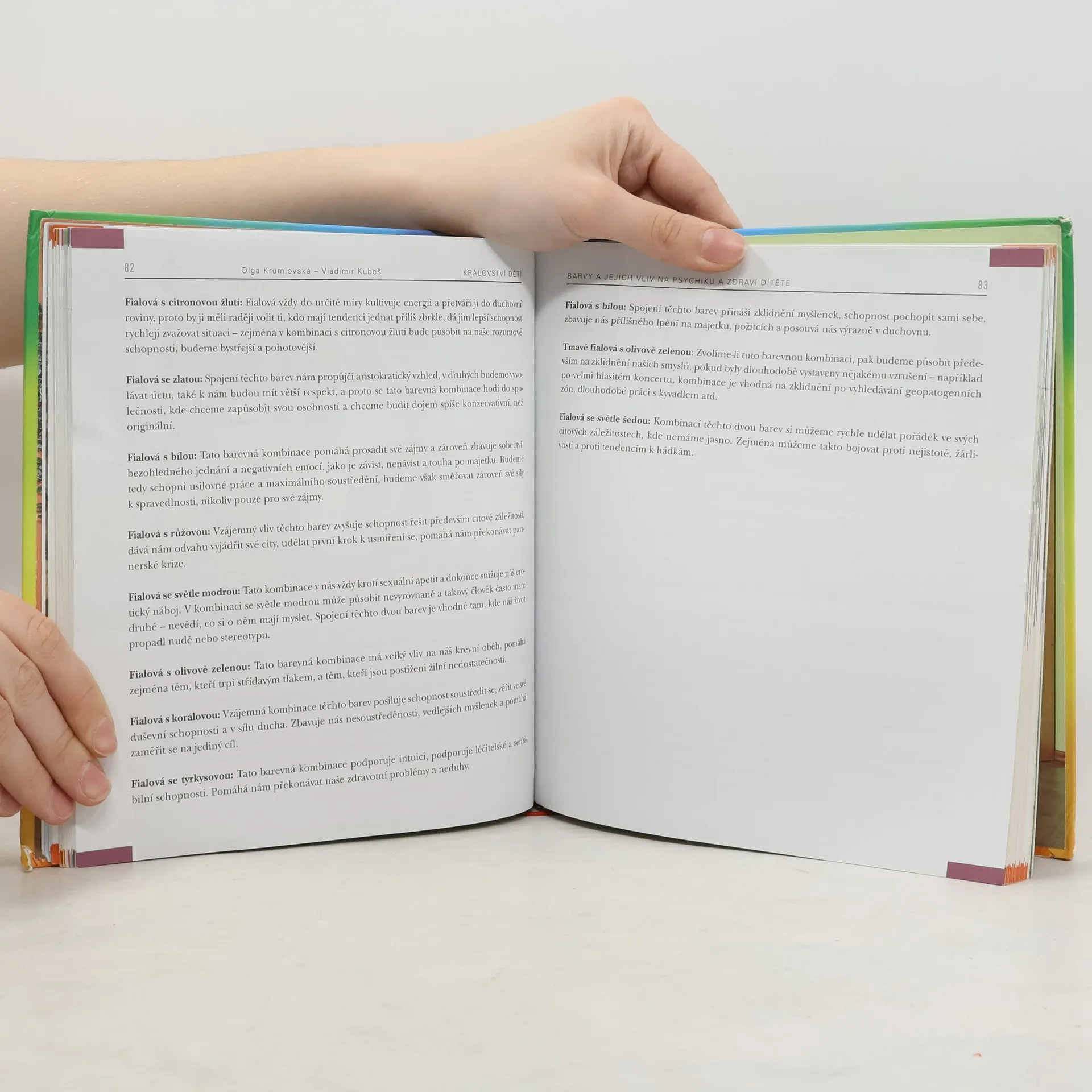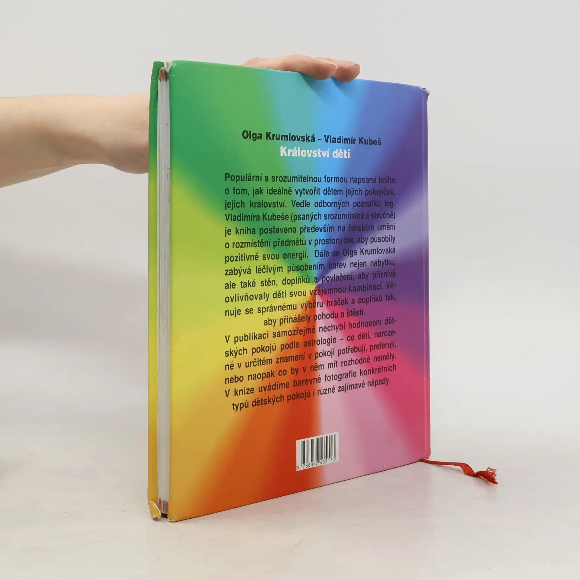 Populární a srozumitelnou formou napsaná kniha o tom, jak ideálně vytvořit dětem jejich království. Vedle odborných poznatků ing. Vladimíra Kubeše (psaných srozumitelně a stručně) je kniha postavena především na kouzelném čínském umění feng-shui (neboli rozmístění předmětů v prostoru tak, aby působily pozitivně svou energií). Dále se Olga Krumlovská zabývá léčivým působením barev nejen nábytku, ale také stěn, doplňků a povlečení tak, aby působily svou vzájemnou kombinací příznivě. Věnuje se správnému výběru hraček a doplňků tak, aby přinášely pohodu a štěstí. V publikaci samozřejmě nechybí hodnocení dětských pokojů podle astrologie – co které znamení v pokoji potřebuje, preferuje, nebo naopak by mít rozhodně nemělo. V knize nechybí barevné fotografie konkrétních typů dětského pokoje i různé zajímavé nápady.