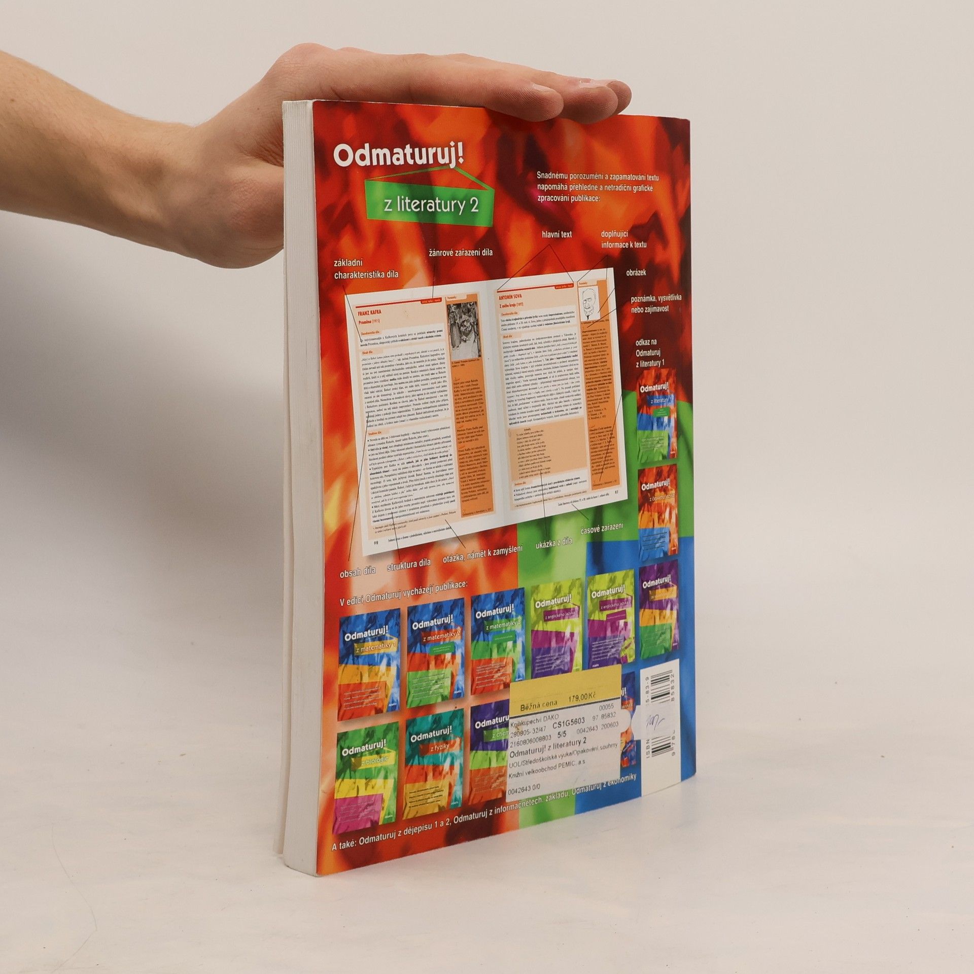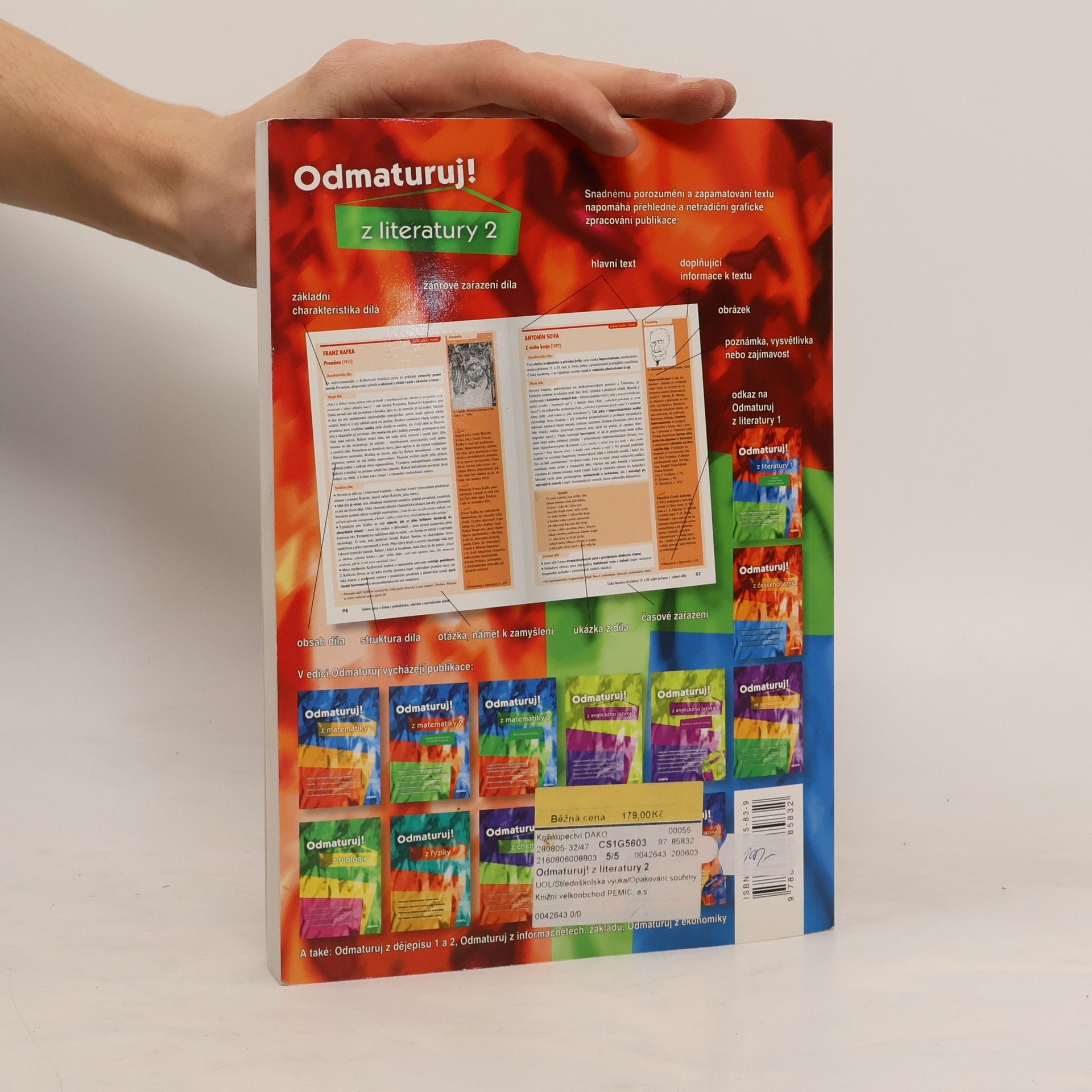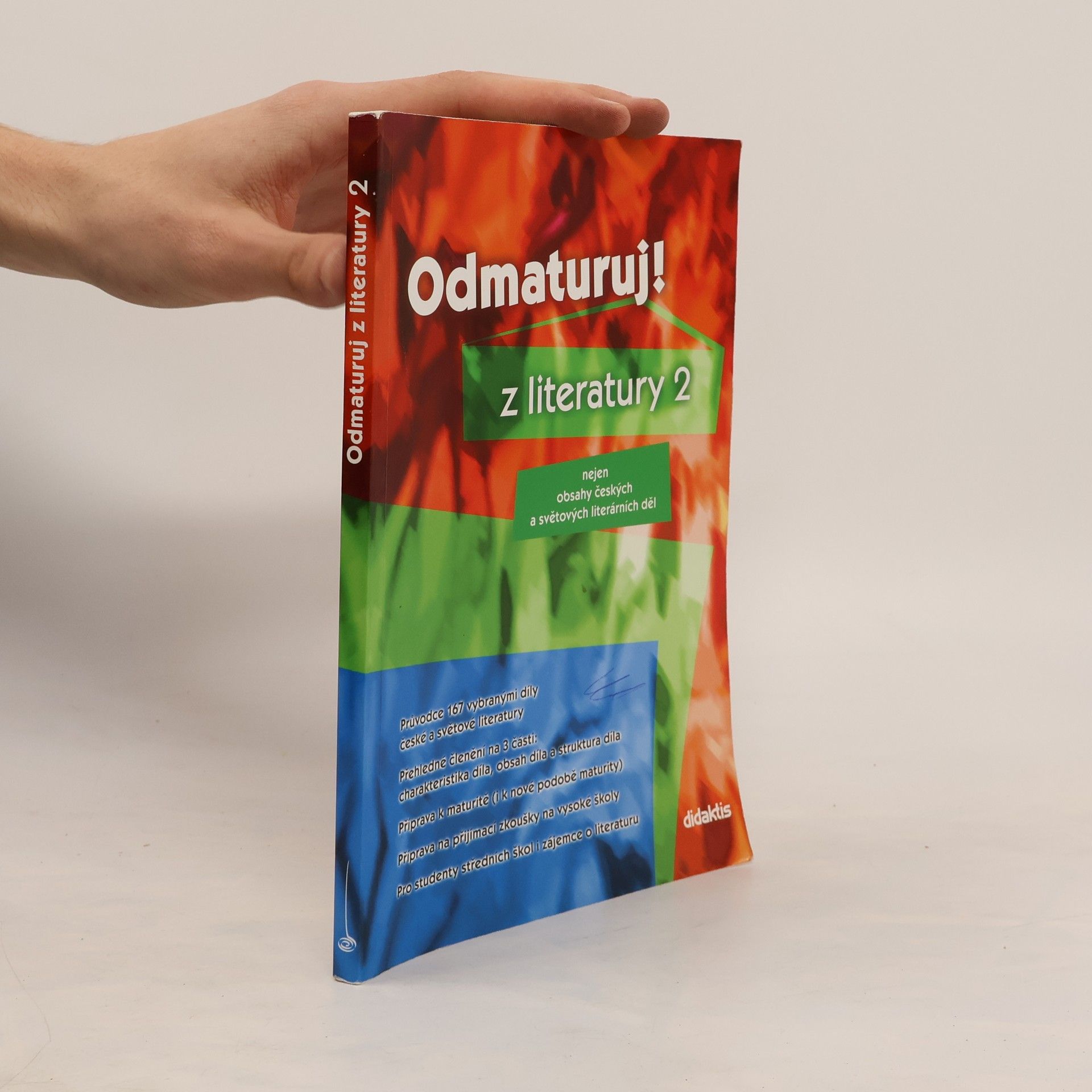 Poutavá učebnice určená k přípravě na maturitu (i k nové podobě maturity) a k přijímacím zkouškám na vysoké školy. Rozšiřuje poznatky z Odmaturuj z literatury 1, obsahuje 167 vybraných děl české a světové literatury od počátků do současnosti, zahrnuje prózu i poezii. Kniha je doplněna ukázkami z děl, podnětnými otázkami, vysvětlením literárněvědných pojmů, obrázky, poznámkami a zajímavostmi. * Každému dílu je věnována jedna strana a text je přehledně členěn na 3 části.