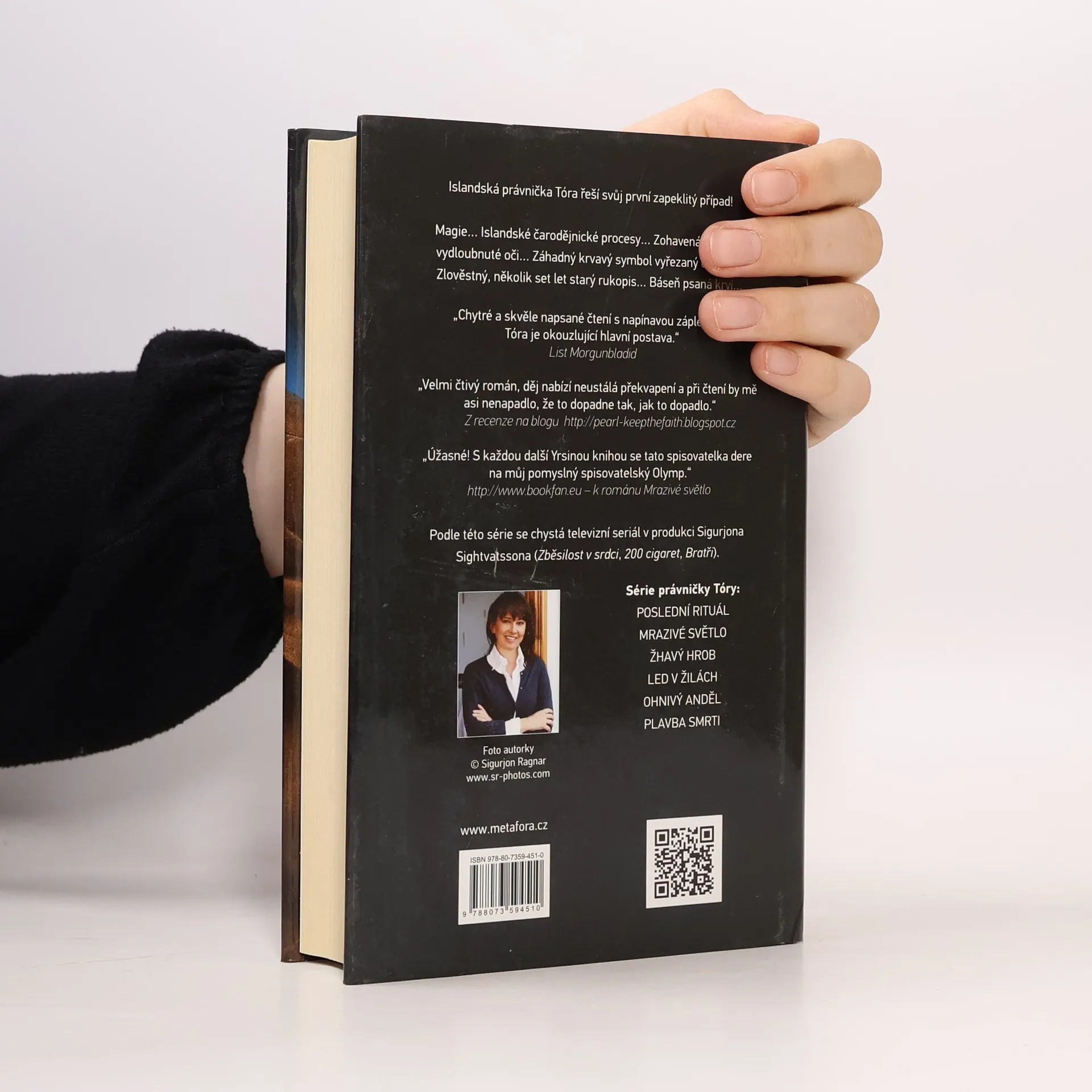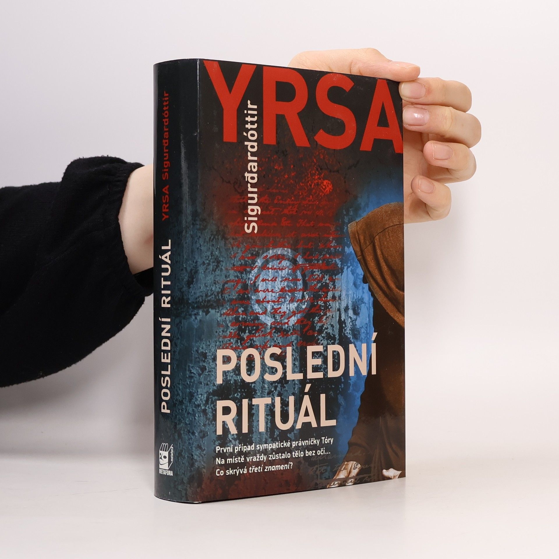 První případ sympatické islandské právničky Tóry Na místě vraždy zůstalo tělo bez očí... Co skrývá třetí znamení? V budově univerzitní katedry historie v Reykjavíku je nalezena zohavená mrtvola německého studenta Haralda. Má vypíchnuté oči a jeho tělo je označeno magickou runou. Bohatá rodina zavražděného najme bývalého kriminalistu Matthiase a islandskou právničku Tóru. Brzy vyjde najevo, že Harald založil spolek zájemců o čarodějnictví a vášnivě studoval islandské čarodějnické procesy. Sám měl na těle spoustu tetování, nechal si rozpůlit jazyk, aby vypadal jako hadí, a zajímal se o mučení, které možná kdysi vyzkoušel i v praxi. Tóra s Matthiasem tedy logicky hledají vraha mezi adepty magie. Další stopa, báseň psaná krví, vede pro změnu k Haraldově rodině, kde očividně není všechno v pořádku. Do toho se ještě přimíchá tajemný rukopis, plán cesty k záhadnému předmětu, k němuž má hledače dovést „třetí znamení“. Poslední rituál není rozhodně pouhou detektivkou. Barvitě vylíčený, pracovní i milostný, život rozvedené právničky Tóry a jejích dospívajících dětí dělá z knihy to pravé čtení pro všechny milovníky napínavých, přesto však lidských příběhů. Příznivce tajemna a magie potěší realistickým pohledem do této nanejvýš zajímavé oblasti a milovníky kriminálních příběhů napínavým pátráním po vrahovi.