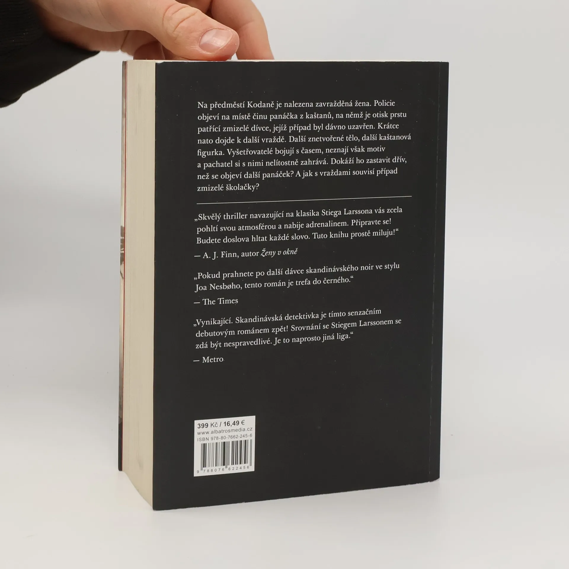 Podmanivý thriller od autora dánského seriálového hitu Zločin. Jednoho sychravého podzimního dne najde policie na předměstí Kodaně tělo mladé ženy. Někdo ji brutálně zavraždil a uřízl jednu ruku. Nad obětí visí panáček z kaštanů. Případu se ujímá mladá a ambiciózní vyšetřovatelka Naia Thulinová. Za parťáka dostane vyhořelého kolegu Marka Hesse, kterého právě vyhodili z hlavního sídla Europolu v Haagu a poslali zpět do Kodaně. Brzy přijdou na to, že kaštanový panáček na sobě nese stopu po zmizelé dívce, o které se všichni domnívají, že byla před rokem zavražděna: jedná se o dceru Rosy Hartungové, ministryně sociálních věcí. Případ je dávno objasněný a pachatel se k vraždě přiznal. Krátce nato je ale nalezena další oběť a s ní i další kaštanová figurka se stopou po mrtvé dívce. Thulinová s Hessem pátrají po souvislostech mezi případem dcery ministryně, zavražděnými ženami a vrahem, kterému se daří šířit strach po celé zemi. Hrají o čas. Obávají se, že se pachatel vydal na vražednou misi, která pro něho ještě zdaleka neskončila.