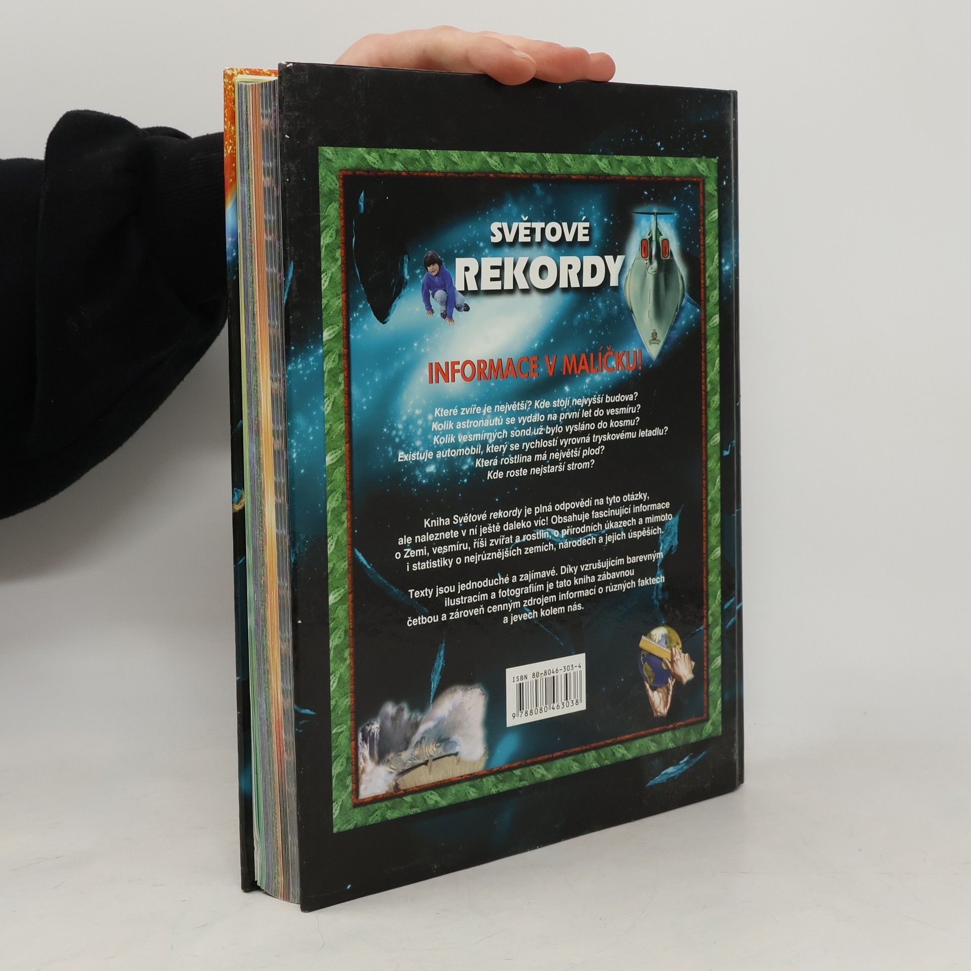 Které zvíře je největší? Kde stojí nejvyšší budova? Kolik astronautů se vydalo na první let do vesmíru? Kolik vesmírných sond už bylo vysláno do kosmu? Která rostlina má největší plod? Kde roste nejstarší strom? Existuje automobil, který se rychlostí vyrovná tryskovému letadlu? Kniha Světové rekordy je plná odpovědí na tyto otázky, ale naleznete v ní ještě daleko víc! Obsahuje fascinující informace o Zemi, vesmíru, říši zvířat a rostlin, o přírodních úkazech a mimoto i statistiky o nejrůznějších zemích, národech a jejich úspěších.