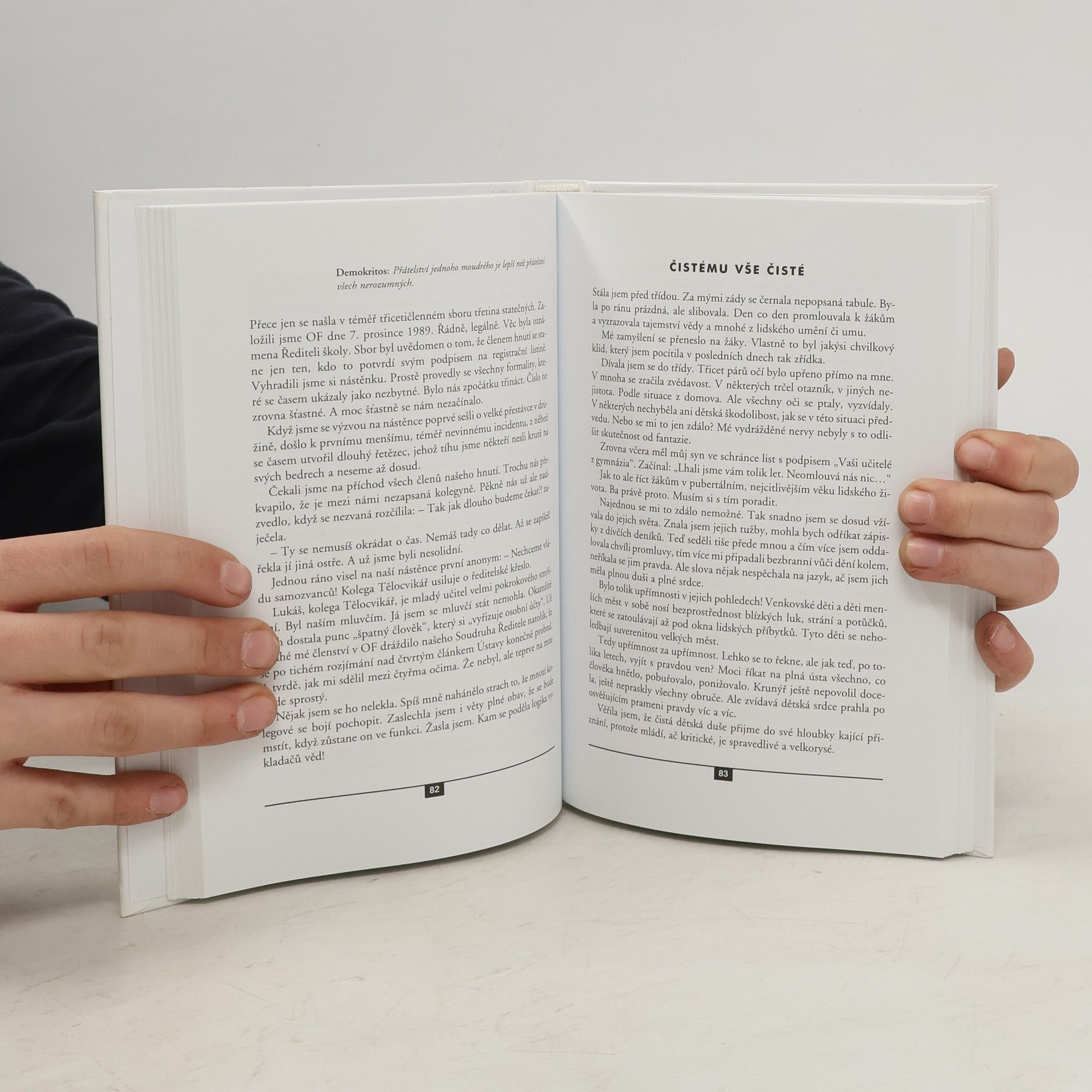 Autorka zachycuje tvář komunistického školství tak, jak ji sama vnímala. Činí tak mimo jiné také z úcty k hrstce statečných, kterým šlo především o nápravu. Tím spíše, když vidí, kdo a jak zúročuje naděje a vklad do sametové revoluce.