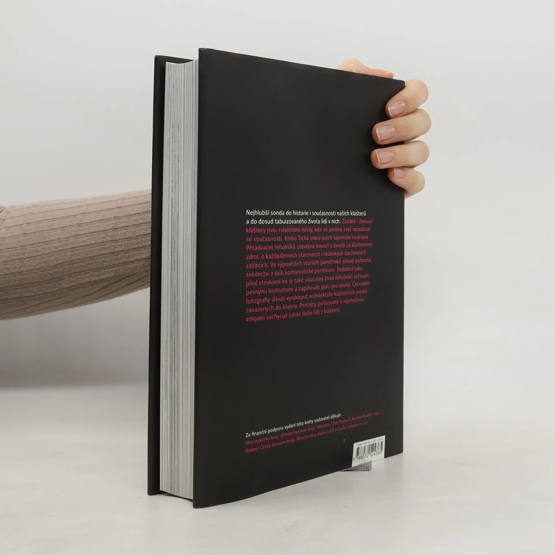 Tato výjimečná kniha nabízí nejhlubší pohled do historie a současnosti klášterů, přičemž se zaměřuje na dosud tabuizovaný život lidí v nich. Autorka, renomovaná spisovatelka Alena Ježková, více než pět let shromažďovala písemné podklady a zvukové záznamy, studovala historii řeholních řádů a navštěvovala kláštery v Čechách a na Moravě. Publikace je vyčerpávajícím a čtivým exkurzem do historie šesti řádů: benediktinů, cisterciáků, premonstrátů, františkánů, dominikánů a boromejek. Obsahuje téměř šedesát esejistických textů o známých klášterech jako Břevnov či Strahov, ale také o opomíjených a zaniklých místech. Významnou součástí knihy jsou výpovědi pětadvaceti řeholníků, včetně kardinála Dominika Duky a dalších významných postav. Vzpomínky pamětníků přinášejí otřesná svědectví z 50. let, kdy komunistický režim kláštery zrušil a řeholníky pronásledoval. Kniha se nezaměřuje pouze na fakta, ale především na otevřené výpovědi lidí žijících podle pevných hodnot a pomáhajících druhým. Hovoří o životě v komunitě a duchovních zážitcích. Text doplňují černobílé fotografie Jiřího Chalupy, které zachycují atmosféru a empatii k místům i lidem.
