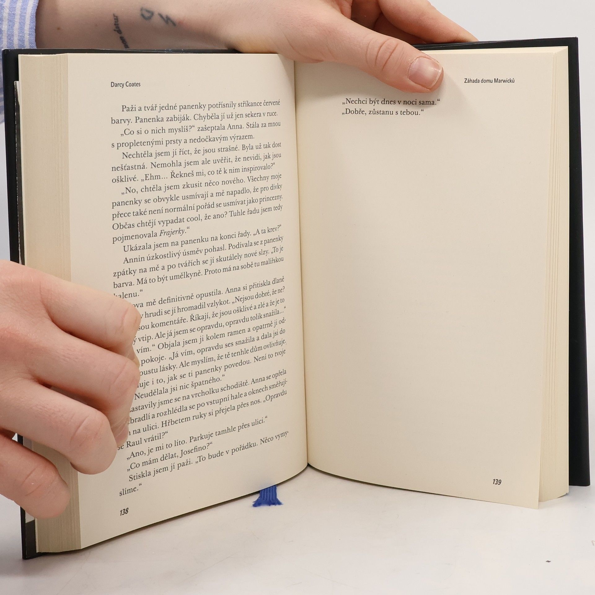 Žiju vedle domu, kde straší. Začala jsem mít podezření, že je s gotickým domem něco v nepořádku, když jeho rodina prchla uprostřed noci, děti s křikem a matka uplakaná. Nikdy se nevrátili, aby si odvezli nábytek. Žádná rodina tam nezůstane dlouho. Zvířata se tomu místu vyhýbají. Jednou mi připadalo, že jsem zahlédla ženskou siluetu, jak se prochází jednou z místností v horním patře… ale to bylo nemožné – nikdo tam v tu dobu nežil. Do domu se právě nastěhovala nová majitelka, Anna. Navštívila jsem ji, abych ji před budovou varovala. Nečekala jsem, že se z nás stanou kamarádky, ale osud tomu chtěl jinak. Teď, když se dům u Marwicků probouzí, poprosila mě, jestli bych u ní nezůstala přes noc. Nikdy jsem neměla v plánu se s budovou nebo její pomstychtivou, mrtvou obyvatelkou zaplést. Teď ale musím Annu zachránit… než bude pro obě z nás příliš pozdě.
