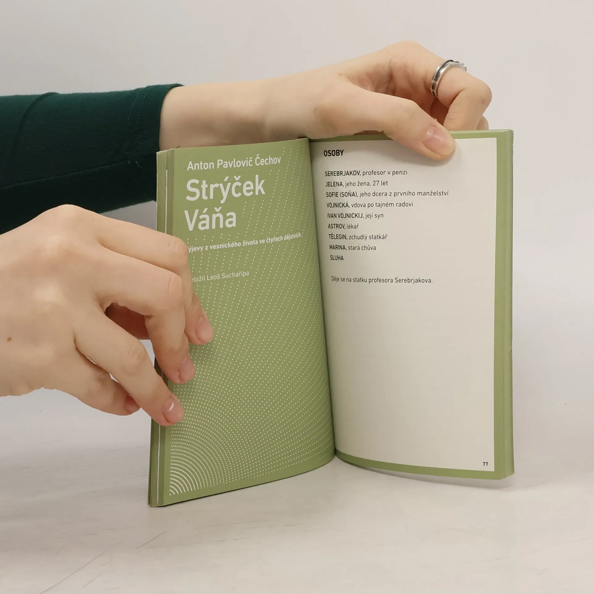 Toužení, zklamání, naděje, zlost. Pocity, které provázejí člověka od chvíle, kdy si začne plně uvědomovat, že mu život protéká mezi prsty. Jsme znechuceni světem, kde ve většině případů vládnou neschopní jedinci, kteří se obvykle nemohou pochlubit ničím jiným, než pouhou gloriolou úspěchu. A penězi. Právě ty jsou v dnešním světě, zdá se, nejdůležitější. Ideje a ideály zmizely. Čekáme. Na štěstí, na změnu, na smrt. A doufáme, že nakonec zvítězí pravda a láska nad lží a nenávistí. To platilo před sto lety stejně jako dnes. Hru v překladu Leoše Suchařípy doplňují studie Vladimíra Svatoně (o době a literatuře počátku dvacátého století, kdy Čechov Strýčka Váňu napsal), Jana Císaře (o čechovovské inscenační tradici u nás) a Ivany Ryčlové (o průkopníkovi Čechovových her K. Stanislavském). Knihu doplňuje bohatá obrazová příloha (fotky z inscenace Strýčka Váni ve Stavovském divadle v režii Michala Dočekala) a snímky ze tří inscenací Čechovových her v Národním divadle v uplynulých padesáti letech.
