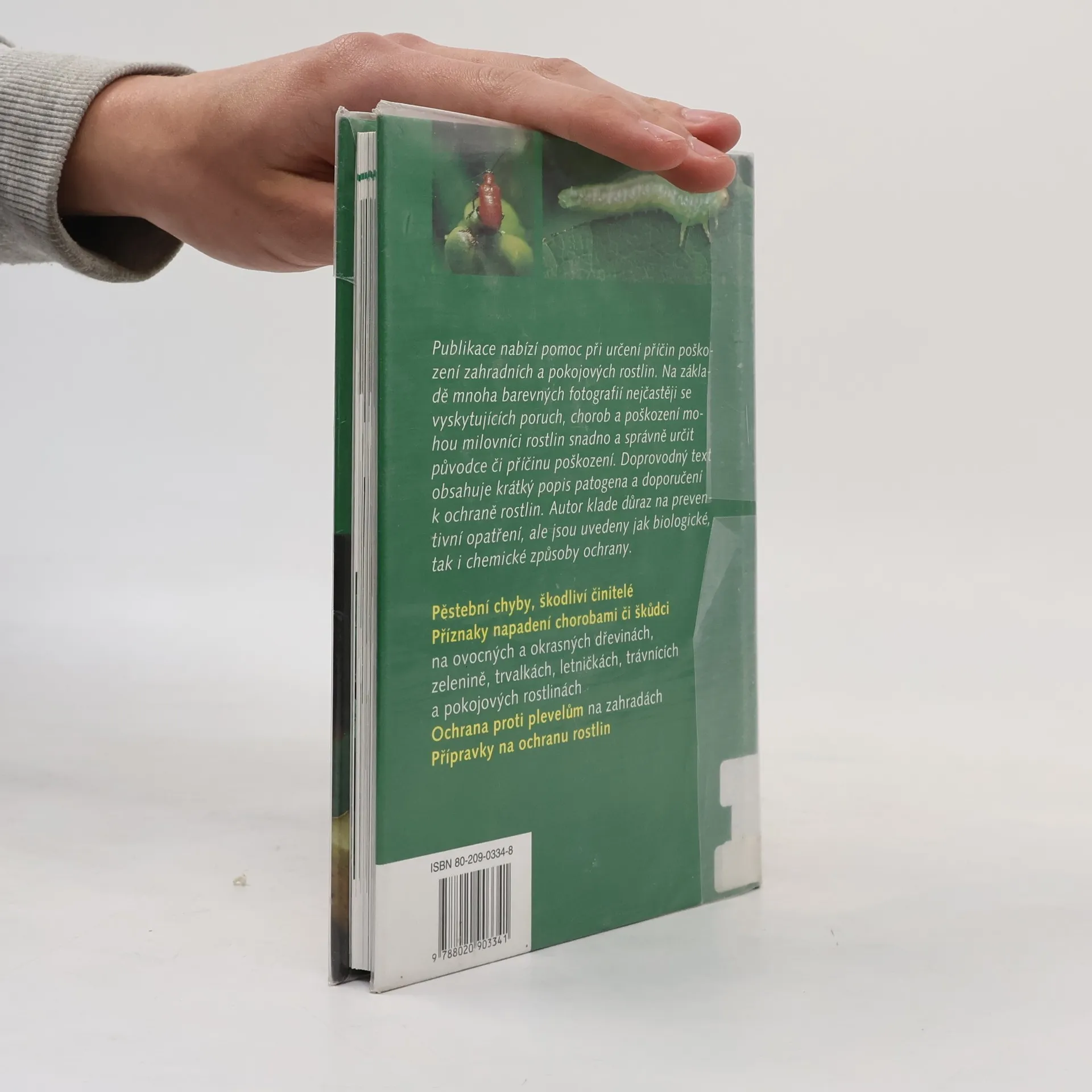Publikace nabízí pomoc při určení příčin poškození zahradních a pokojových rostlin. Na základě mnoha barevných fotografií nejčastěji se vyskytujících poruch, chorob a poškození mohou milovníci rostlin snadno a správně určit původce či příčinu poškození. Doprovodný text obsahuje krátký popis patogena a doporučení k ochraně rostlin. Autor klade důraz na preventivní opatření, ale jsou uvedeny jak biologické, tak i chemické způsoby ochrany. - Pěstební chyby, škodliví činitelé - Příznaky napadení chorobami či škůdci na ovocných a okrasných dřevinách, zelenině, trvalkách, letničkách, trávnících a pokojových rostlinách - Ochrana proti plevelům na zahradách - Přípravky na ochranu rostlin