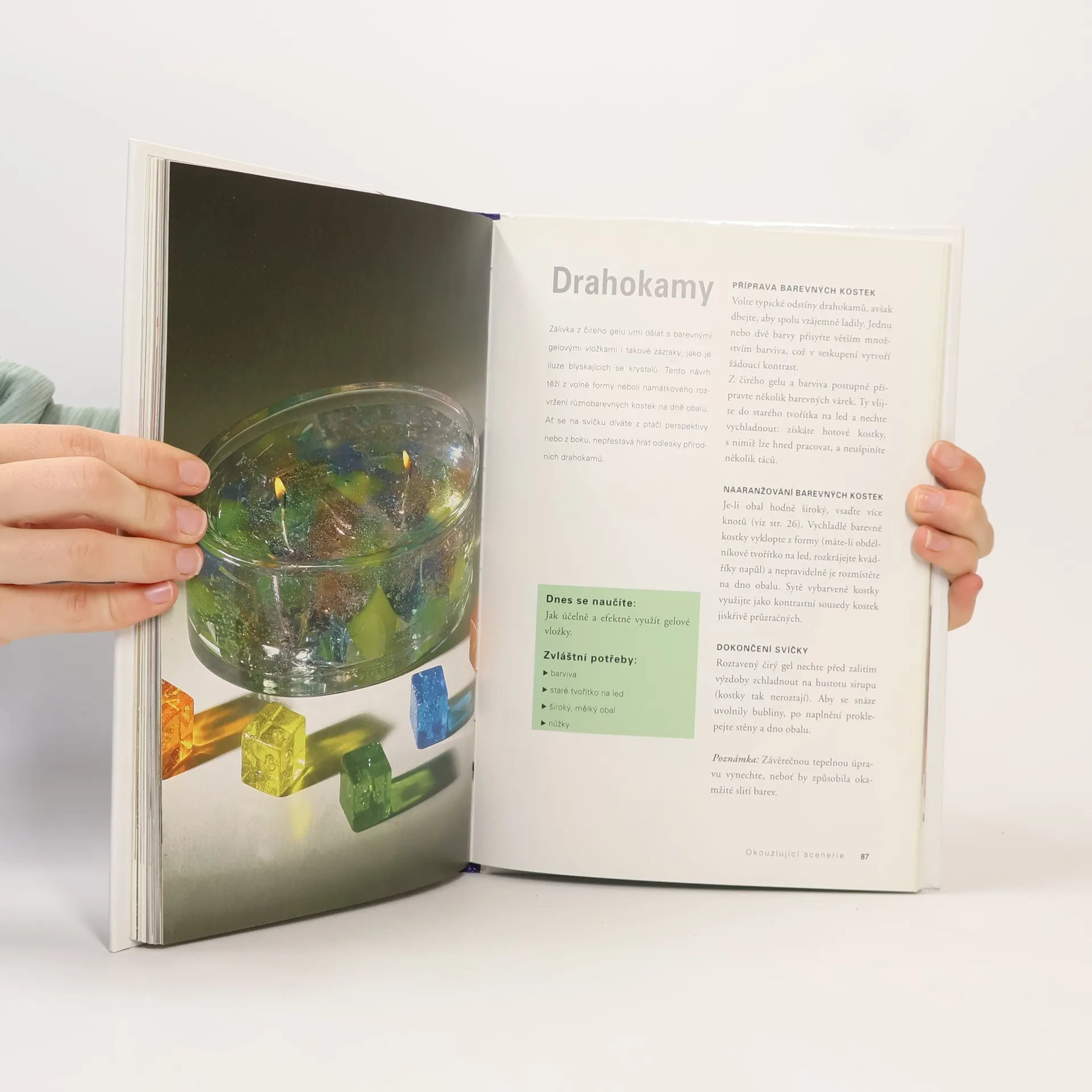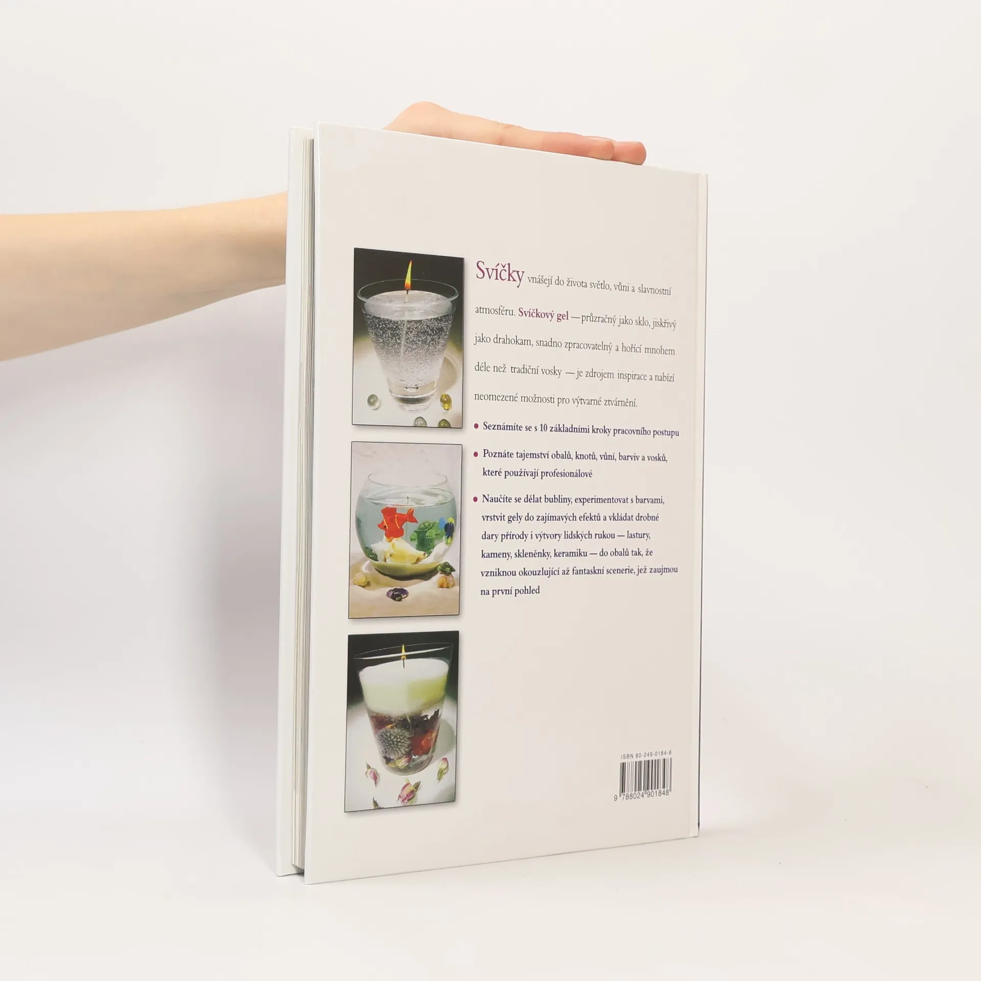 Svíčky vnášejí do domova teplo, vůni a slavnostní náladu. Svíčkový gel je průzračný jako sklo, snadno zpracovatelný a hoří mnohem déle než tradiční vosky, inspiruje k rozmanitému výtvarnému ztvárnění. Každá gelová svíčka je originální: barvou, vůní, obalem i výtvarnou kompozicí. Díky knize se naučíte postup, dělat bubliny, experimentovat s barvami, vrstvit gely do zajímavých efektů a vkládat drobné dary přírody i díla lidských rukou - lastury, kameny, skleněnky, keramiku - do obalů. Vytvoříte okouzlující scenerie! Přeložila Blanka Brabcová. Váz., 144 stran, 17,2 x 24,6 cm