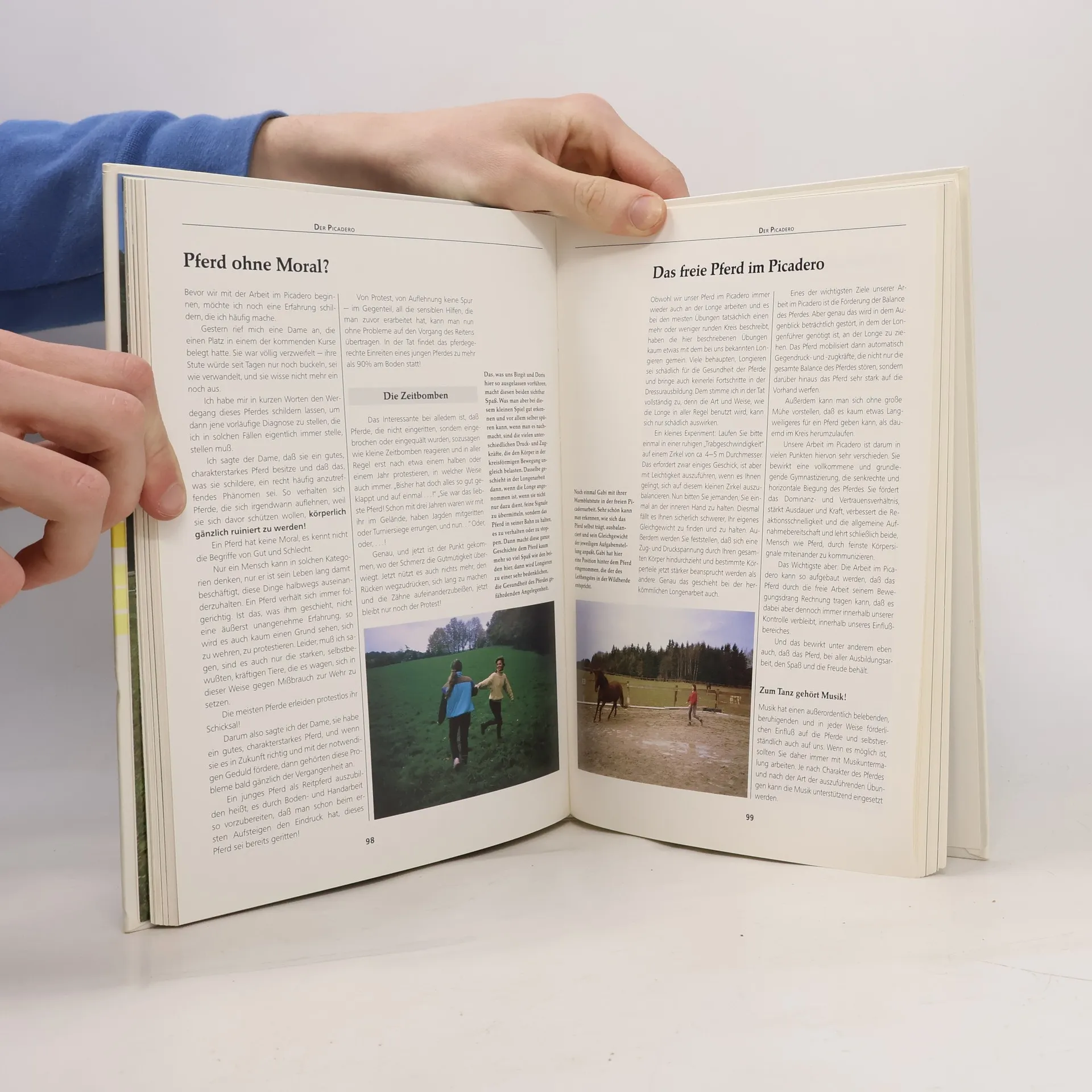 In seiner ungewöhnlichen Reitlehre zeigt "Europas profiliertester Pferdeflüsterer" (ARD), dass Dominanz ohne Strafe und Versammlung ohne Zügeldruck keine Gegensätze sind. Basierend auf pferdegerechter Kommunikation - der Verständigung durch Körpersprache - ist es dem Menschen möglich, eine vertrauensvolle und harmonische Beziehung zu seinem Pferd aufzubauen.§§Schritt für Schritt erklärt der Autor, wie der Reiter durch Körperhaltung, Gestik und bestimmte Positionen seinem Pferd gegenüber die Rolle des respektierten, da vertrauenswürdigen Leittiers einnimmt. Ausführliche Bildsequenzen verdeutlichen die einzelnen Bewegungsabläufe und Signale der Kommunikation und zeigen, wie diese bei der Bodenarbeit, beim Anreiten eines jungen Pferdes oder bei versammelnden Übungen eingesetzt werden.§§Mit Pferden tanzen - ein neuer Weg zur harmonischen Verständigung zwischen Mensch und Pferd!
