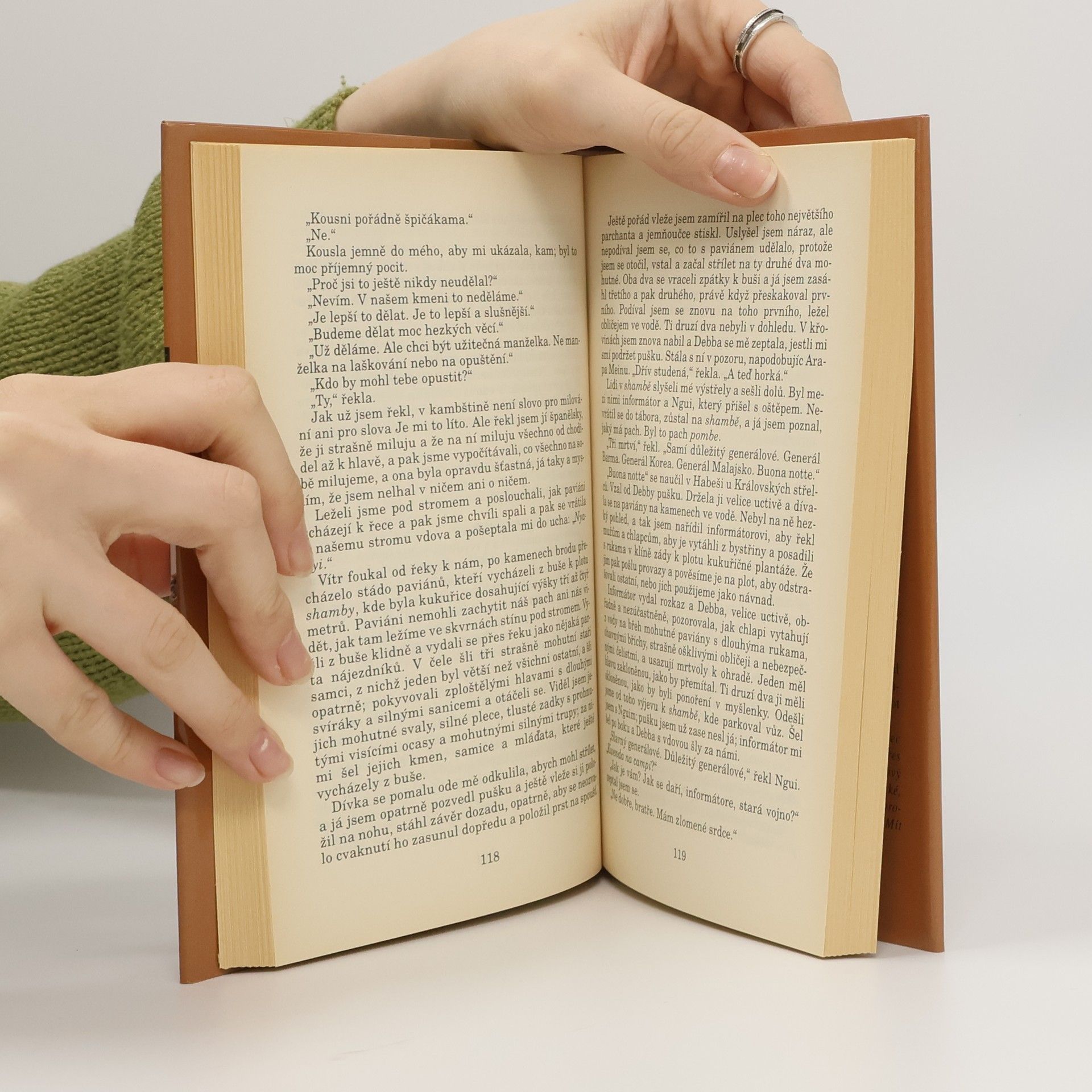 Román z autorovy pozůstalosti zpracovává jeho zážitky a dojmy z afrického safari. Román kolísající mezi autobiografií a fikcí vypráví příběh lovce, zodpovědného za vedení loveckého tábora. Ten se musí vyrovnávat s hrozbou, že tábor bude napaden znesvářenými domorodými kmeny, ale zároveň chce pomoci své ženě Mary při lovu na lva. Román vyniká nádhernými popisy africké krajiny a líčením vzrušujícího lovu zvěře, pochopením pro sílu přátelství i krásu krajiny a mentalitu místních lidí.