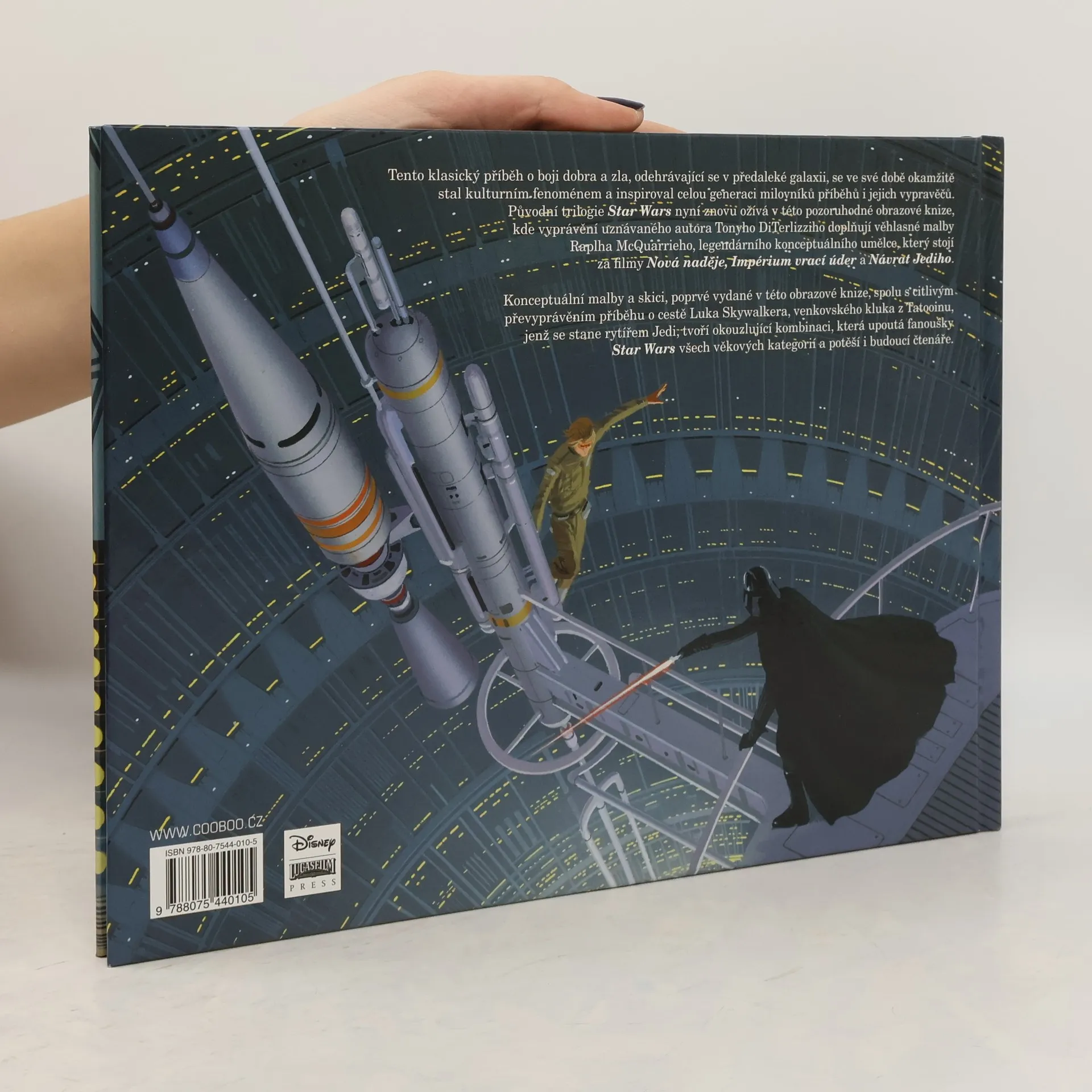Původní trilogie Star Wars nyní znovu ožívá v této pozoruhodné obrazové knize, kde vyprávění uznávaného autora Tonyho DiTerlizziho doplňují věhlasné malby Raplha McQuarrieho, legendárního konceptuálního umělce, který stojí za filmy Nová naděje, Impérium vrací úder a Návrat Jediho.