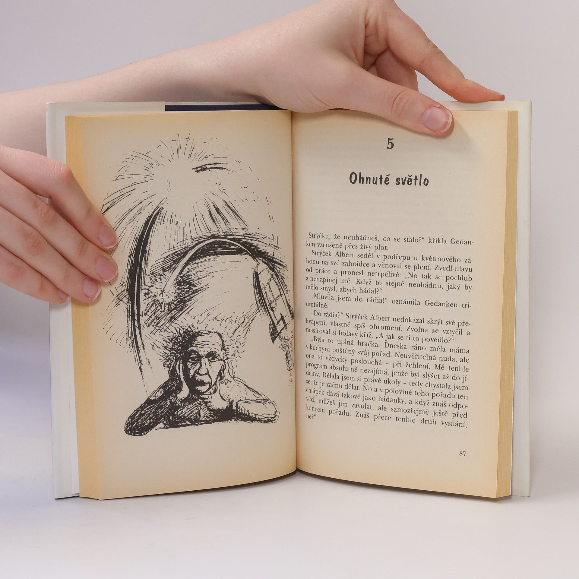 Autor -známý fyzik za vydatné malé Gedanken přibližuje dětem základní představy současné vědy o vesmíru, prostoru a času, Gedanken se vydává jako průzkumník ověřit domněnky svého strýčka Alberta (Einsteina) v myšlenkové raketě.