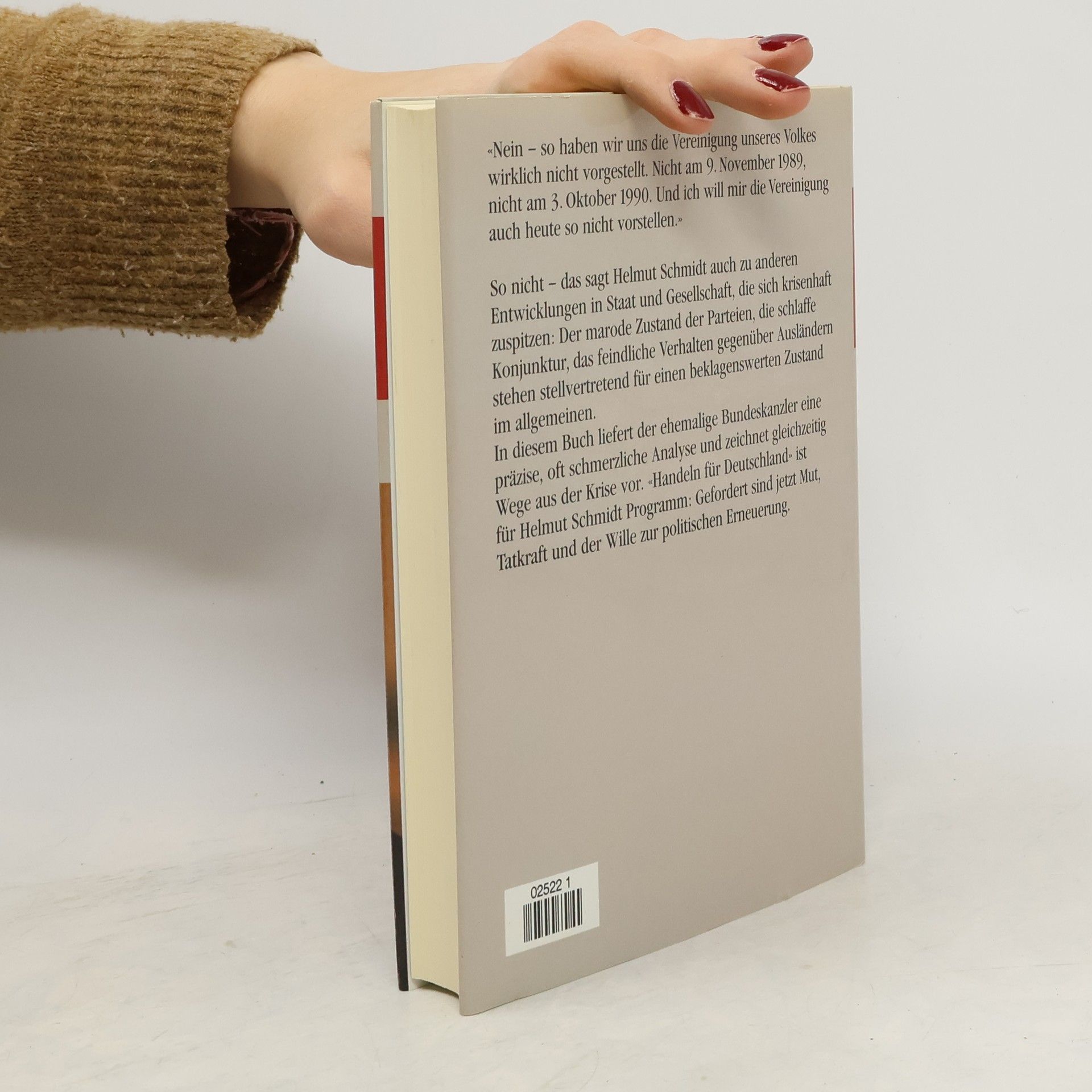 Angesichts der wenig erfreulichen Situation in der Bundesrepublik, meldet sich der ehemalige Bundeskanzler Helmut Schmidt zu Wort. In seinem sechs Kapitel umfassenden Buch beschäftigt er sich mit den politischen, ökonomischen und psychologischen Folgen der deutschen Einheit. Er fragt, ob Politiker im Herbst 1989 die Probleme der deutschen Vereinigung tatsächlich in solchem Maße unterschätzt haben, wie behauptet wird. Helmut Schmidt fordert einen radikalen Kurswechsel, egal unter welcher Regierung.
