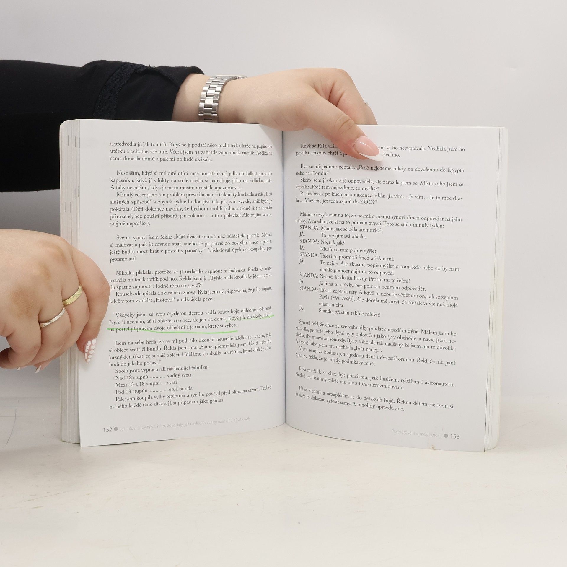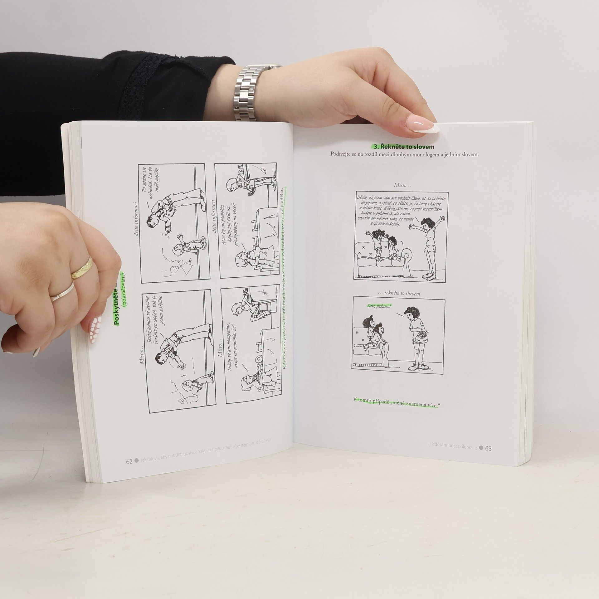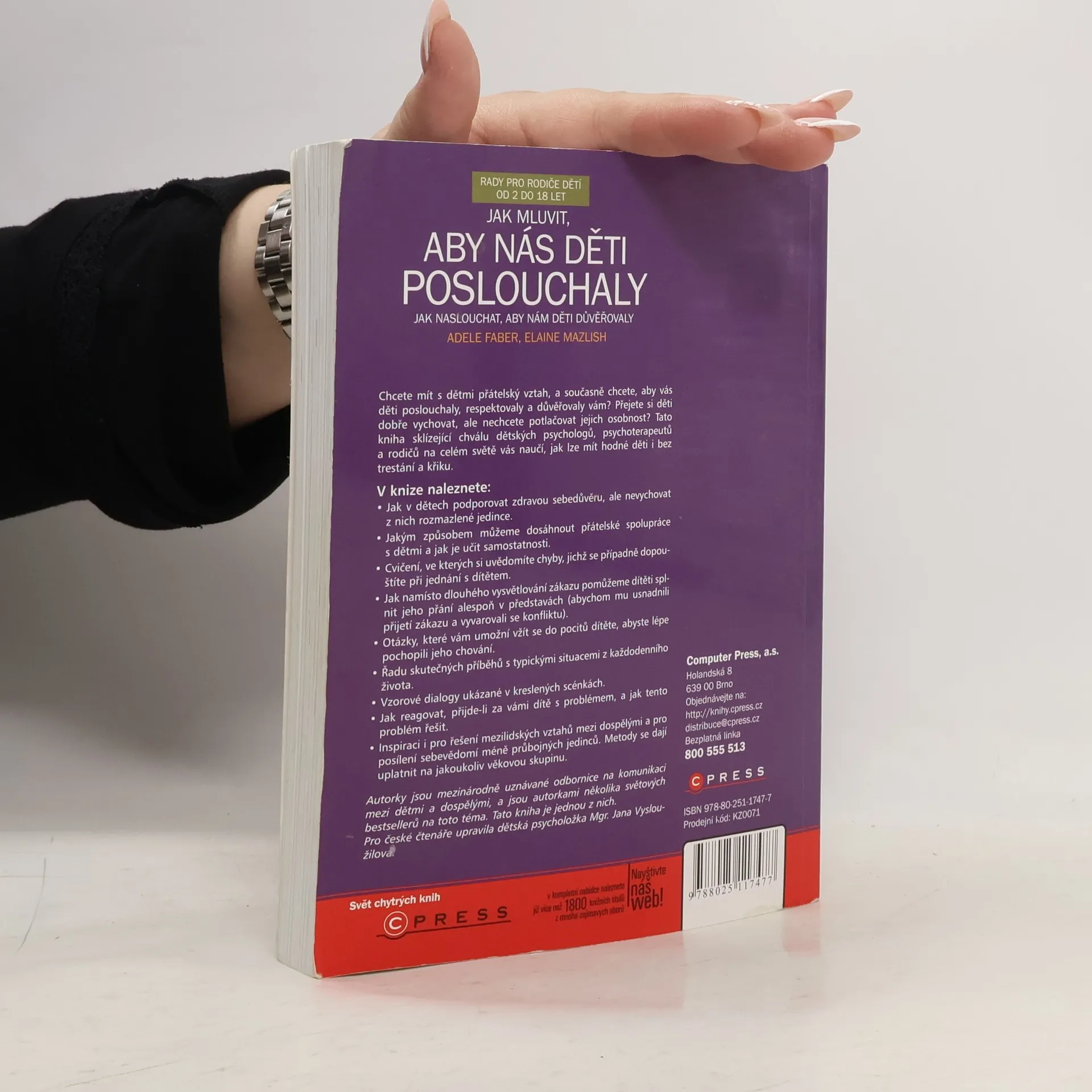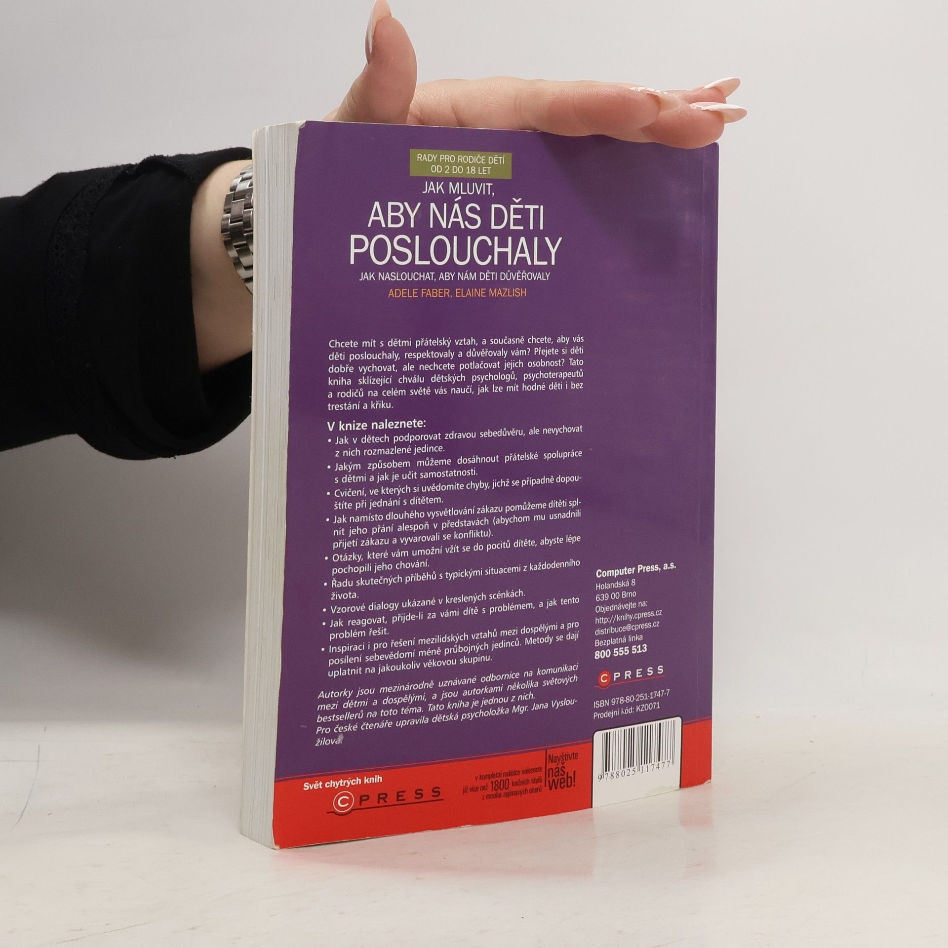 S podtitulem: Jak naslouchat, aby nám děti důvěřovaly. Chcete mít s dětmi přátelský vztah, a současně chcete, aby vás děti poslouchaly, respektovaly a důvěřovaly vám? Přejete si děti dobře vychovat, ale nechcete potlačovat jejich osobnost? Tato kniha sklízející chválu dětských psychologů, psychoterapeutů a rodičů na celém světě vás naučí, jak lze mít hodné děti i bez trestání a křiku. V knize naleznete: • Jak v dětech podporovat zdravou sebedůvěru, ale nevychovat z nich rozmazlené jedince. • Jakým způsobem můžeme dosáhnout přátelské spolupráce s dětmi a jak je učit samostatnosti. • Cvičení, ve kterých si uvědomíte chyby, jichž se případně dopouštíte při jednání s dítětem. • Jak namísto dlouhého vysvětlování zákazu pomůžeme dítěti splnit jeho přání alespoň v představách (abychom mu usnadnili přijetí zákazu a vyvarovali se konfliktu). • Otázky, které vám umožní vžít se do pocitů dítěte, abyste lépe pochopili jeho chování. • Řadu skutečných příběhů s typickými situacemi z každodenního života. • Vzorové dialogy ukázané v kreslených scénkách • Jak reagovat, přijde-li za vámi dítě s problémem, a jak tento problém řešit. • Inspiraci i pro řešení mezilidských vztahů mezi dospělými a pro posílení sebevědomí méně průbojných jedinců. Metody se dají uplatnit na jakoukoliv věkovou skupinu.