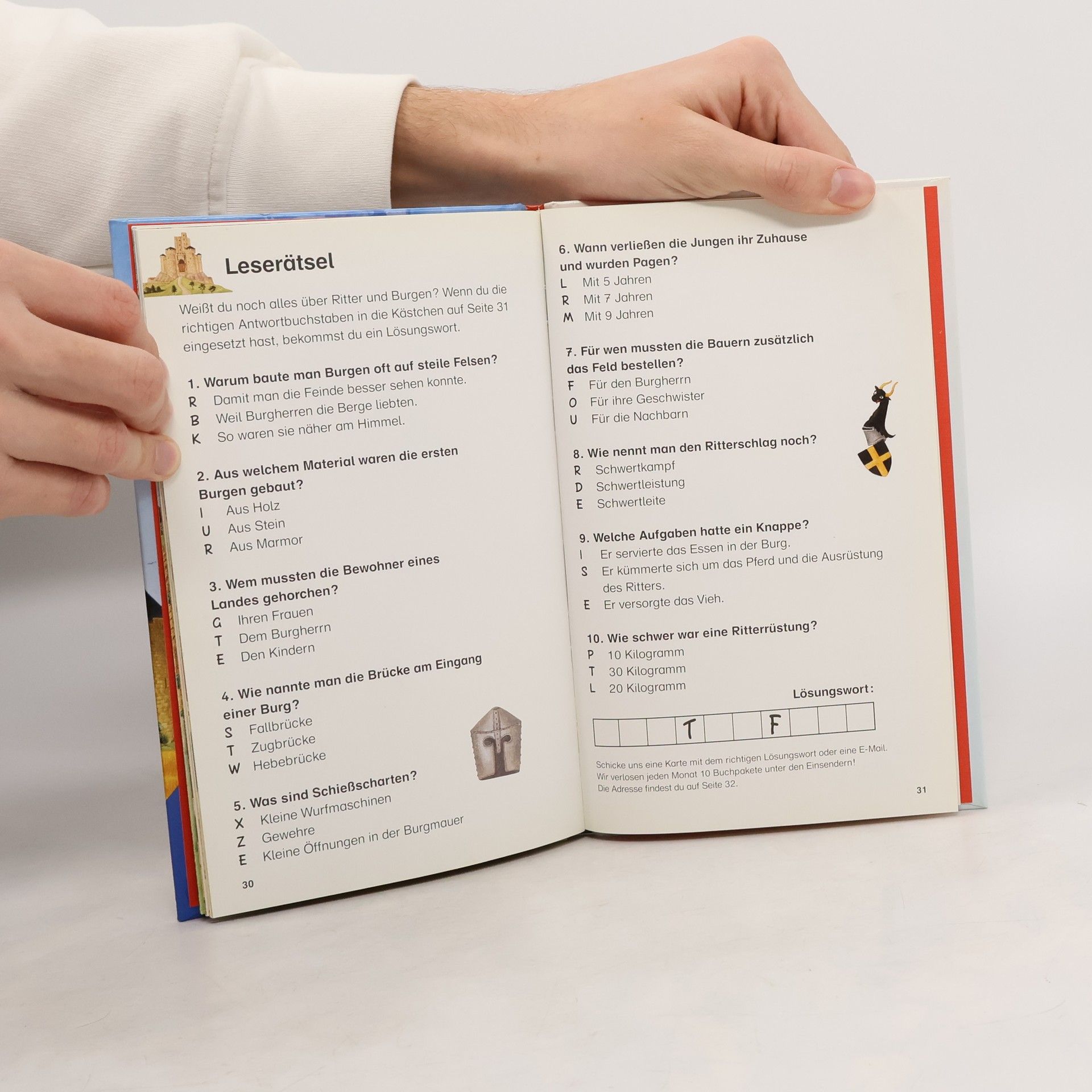 In farbenprächtigen Bildern wird gezeigt, welche Burgen es gab, wie sie gebaut und verteidigt wurden und wie die Menschen früher auf Burgen und in den Dörfern lebten.