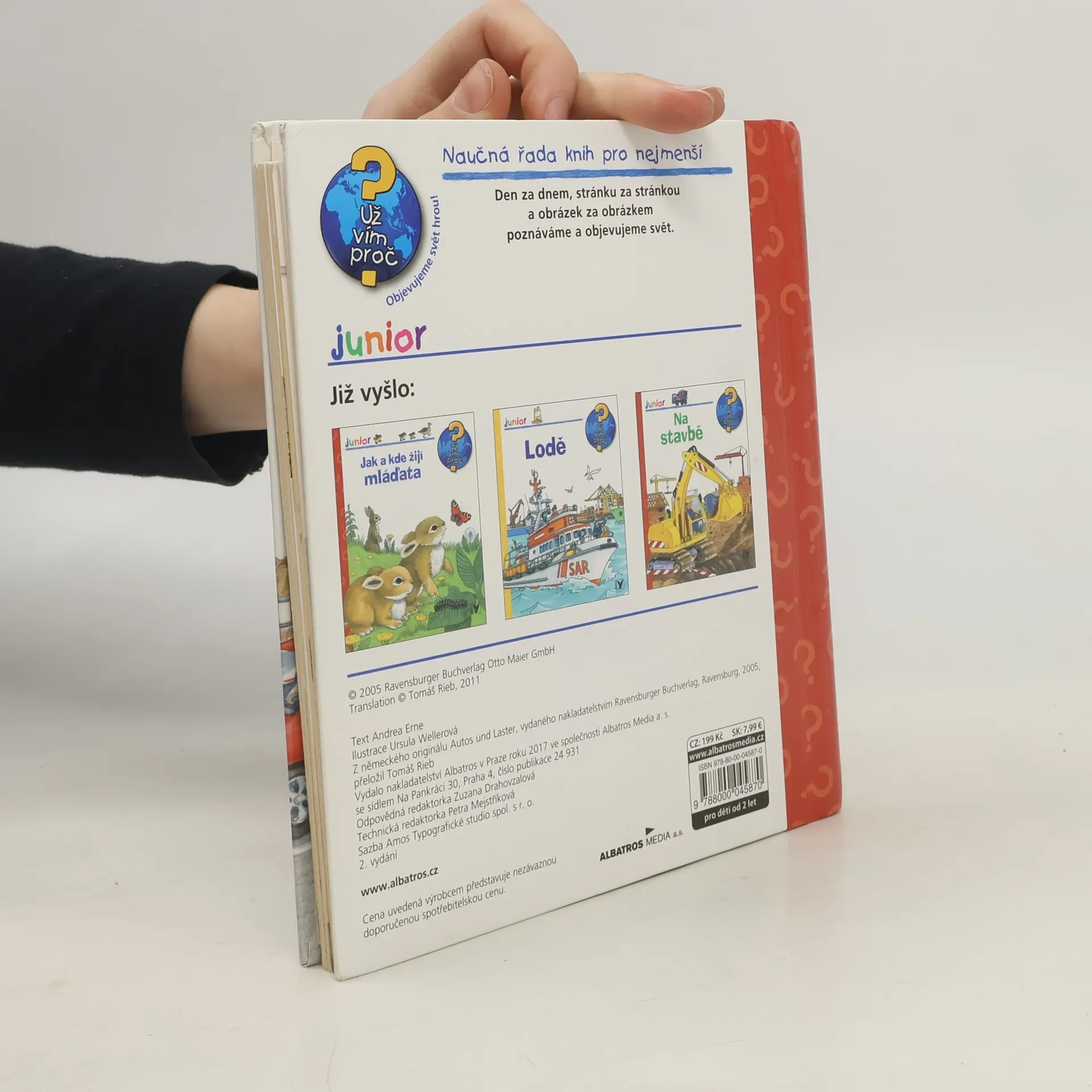 Den za dnem, stránku za stránkou a obrázek za obrázkem poznáváme a objevujeme svět. Tentokrát se děti v naučné řadě pro nejmenší seznámí s vozidly, která mohou potkat na silnici, dovědí se, kdy musí auto k čerpací stanici nebo kdo pomáhá při automobilové nehodě. Poznají také, jak funguje popelářské auto nebo jaká vozidla pracují na stavbě...