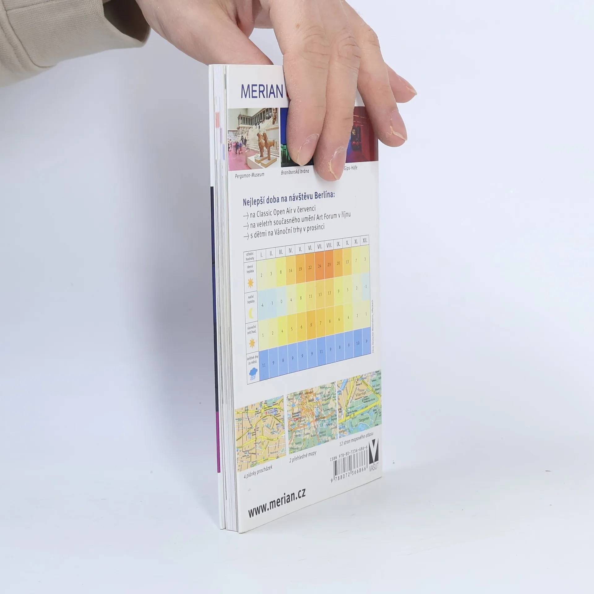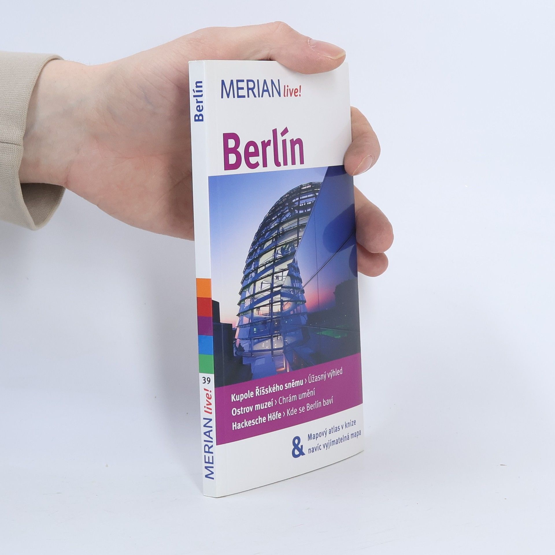 Česká mutace německé ediční řady průvodců "Merian" seznamuje s nejvýznamnějšími kulturními, uměleckými a přírodními památkami Berlína a jeho okolí. Cestovní příručka v úvodu představuje stavební památky, novou výstavbu centra města, zajímavá muzea a galerie. Přináší obecné informace o vstupu do země, radí jak cestovat, jak se ubytovat a kde jíst. Doporučuje vhodné turistické trasy, procházky a výlety s praktickým popisem cesty po městě i okolí. Významné pamětihodnosti města, zábavní parky, kavárny, významná muzea jsou popisovány podle abecedy včetně cílů v okolí (Potsdam, Berlínská jezera, Märkische Schweiz). Průvodce obsahuje i důležité informace pro turisty, mapky, plánky, fotografie, stručné dějiny města, rejstřík, slovníček, aktualizované ceny a otvírací doby.