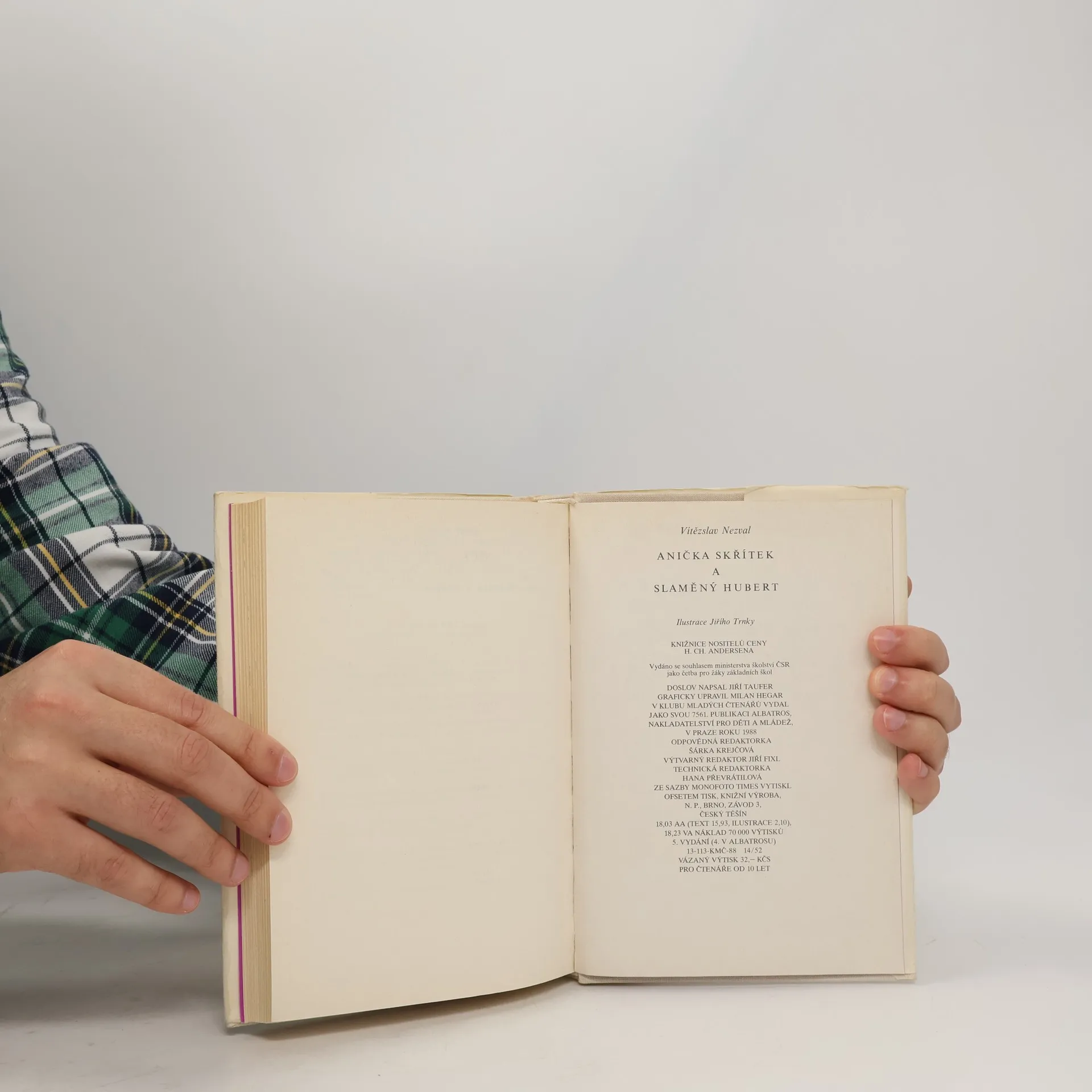 Kouzelná knížka Anička skřítek a Slaměný Hubert vychází s krásnými ilustracemi Jiřího Trnky jako vzpomínka na neobyčejného spisovatele Vítězslava Nezvala. Poetický příběh plný tajemství a dětských dobrodružství potěší dětské i dospělé čtenáře. Z náhodného setkání dvou dětí, které si povídají, procházejí městem a v obyčejných a prostých věcech nacházejí podivuhodný svět fantazie, tak vzniká neobyčejné vyprávění.