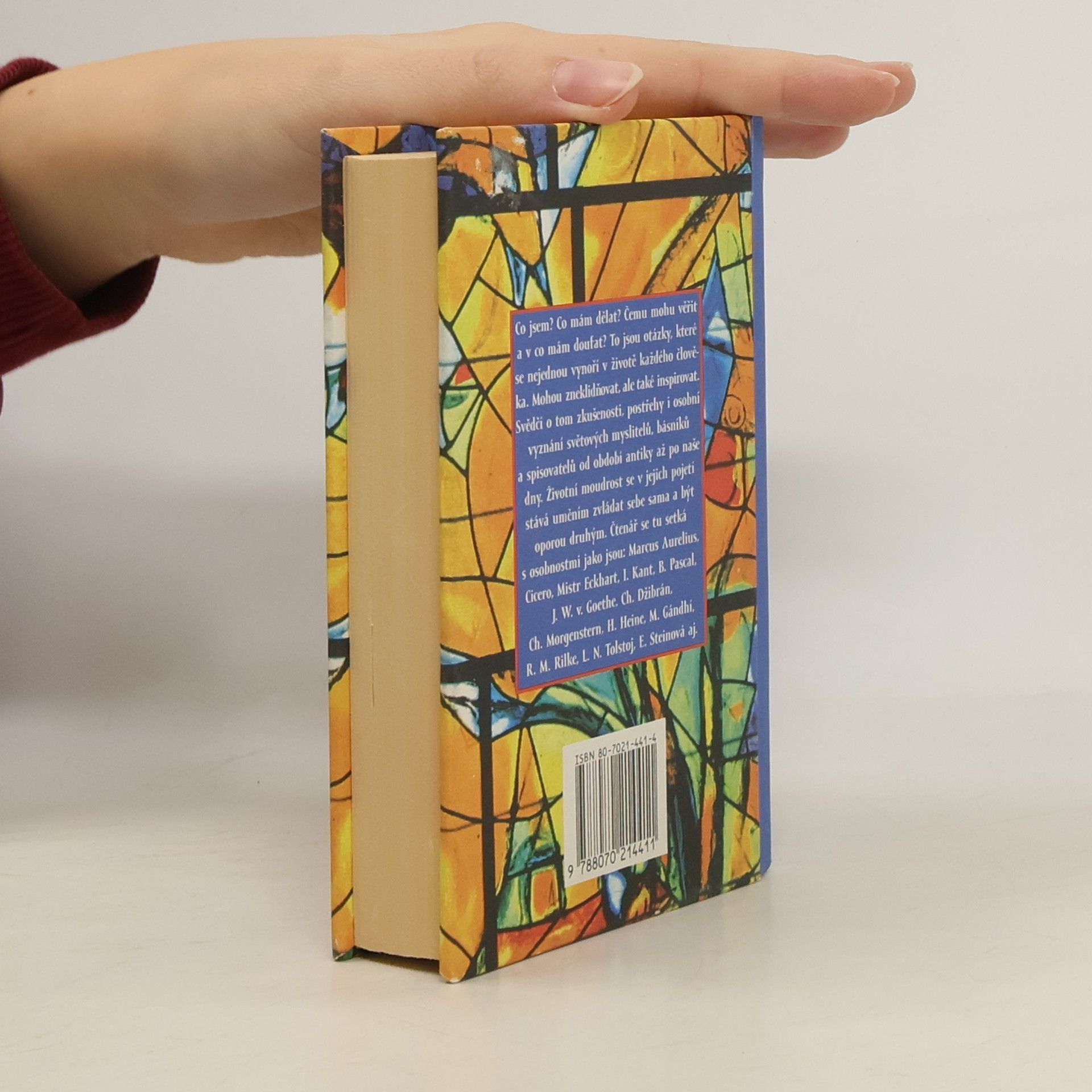 Postřehy, aforismy a osobní vyznání světových myslitelů, básníků a spisovatelů od období antiky až po naši současnost. Čtenář se tu setká s osobnostmi jako jsou: Marcus Aurelius, Cicero, Mistr Eckhart, I.Kant, B.Pascal, J.W.Goethe, H.Heine, R.M.Rilke, L.N.Tolstoj aj.