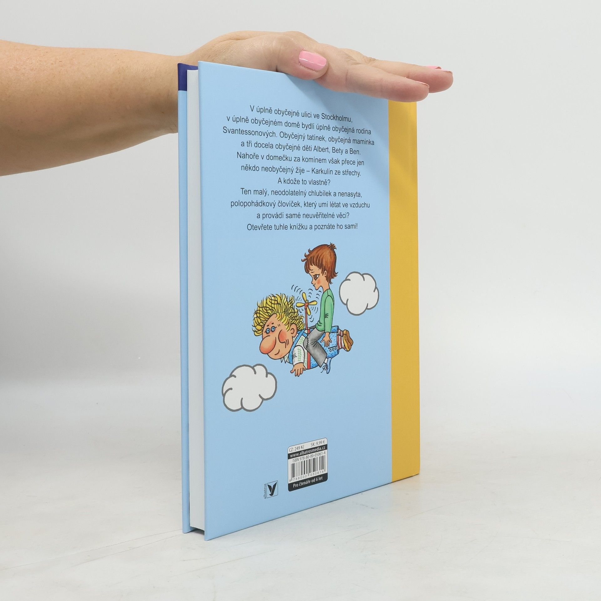 V úplně obyčejné ulici ve Stockholmu, v úplně obyčejném domě bydlí úplně obyčejná rodina Svantessonových. Obyčejný tatínek, obyčejná maminka a tři docela obyčejné děti Albert, Bety a Ben. Nahoře v domečku za komínem však přece jen někdo neobyčejný žije – Karkulín ze střechy. A kdože to vlastně je? Ten malý, neodolatelný chlubílek a nenasyta, polopohádkový človíček, který umí létat ve vzduchu a provádí samé neuvěřitelné věci? Otevřete tuhle knížku a poznáte ho sami!