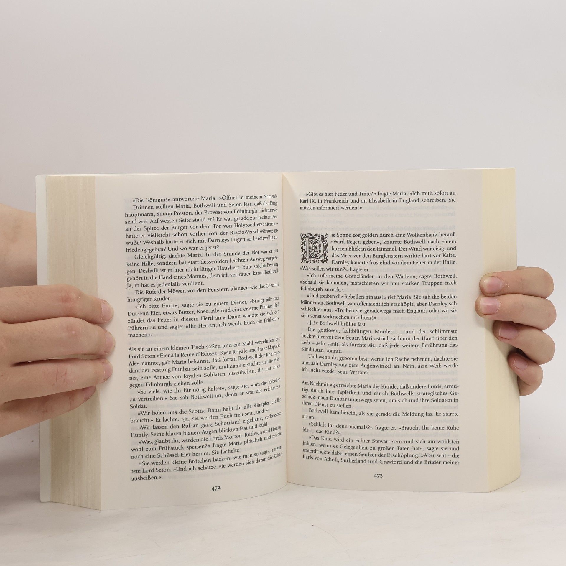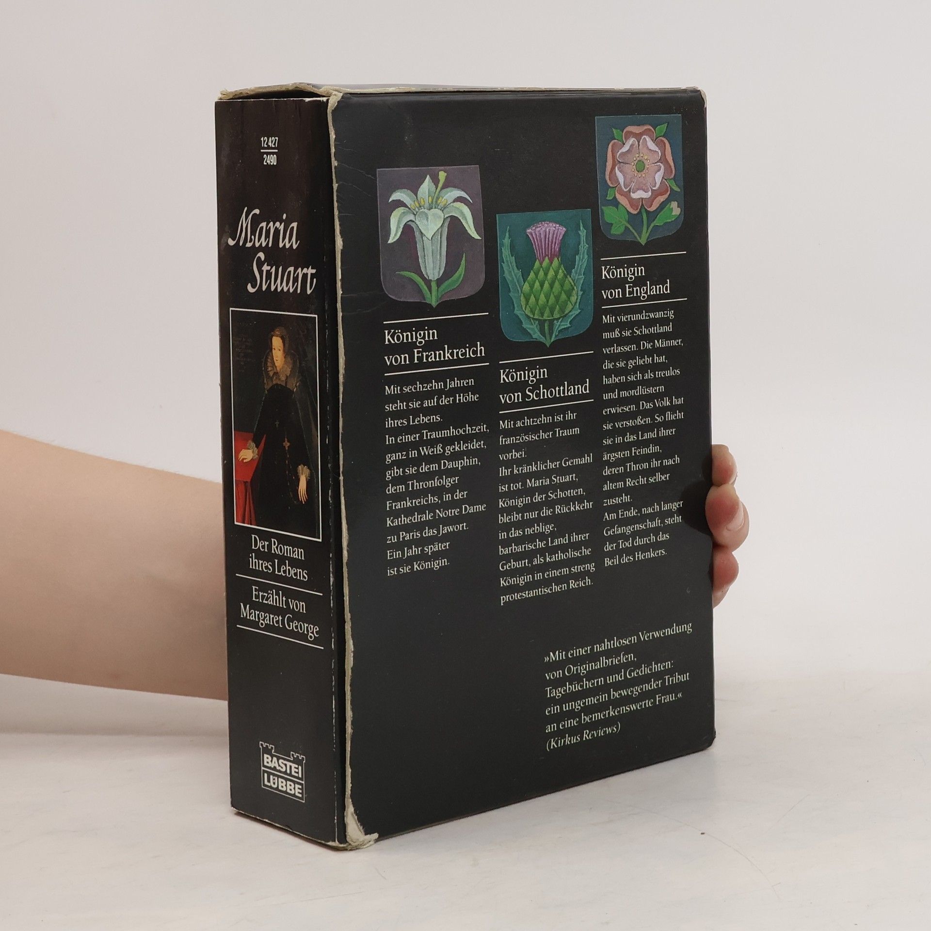 Königin von Frankreich Mit 16 Jahren steht sie auf der Höhe ihres Lebens. In einer Traumhochzeit, ganz in Weiß gekleidet, gibt sie dem Dauphin, dem Thronfolger Frankreichs, in der Kathedrale Notre Dame zu Paris das Jawort. Ein Jahr später ist sie Königin. Königin von Schottland Mit 18 ist ihr französischer Traum vorbei. Ihr kränklicher Gemahl ist tot. Maria Stuart, Königin der Schotten, bleibt nur die Rückkehr in das neblige, barbarische Land ihrer Geburt, als katholische Königin in einem streng protestantischen Reich Königin von England Mit 24 muß sie Schottland verlassen. Die Männer, die sie geliebt hat, haben sich als treulos und mordlüstern erwiesen. Das Volk hat sie verstoßen. So flieht sie in das Land ihrer Feindin, deren Thron ihr nach altem Recht selber zusteht. Am Ende, nach langer Gefangenschaft, steht der Tod durch das Beil des Henkers. „Mit einer nahtlosen Verwendung von Originalbriefen, Tagebüchern und Gedichten: ein ungemein bewegender Tribut an eine bemerkenswerte Frau.“ Kirkus Review „Ein einfühlsames Portrait.“ Brigitte