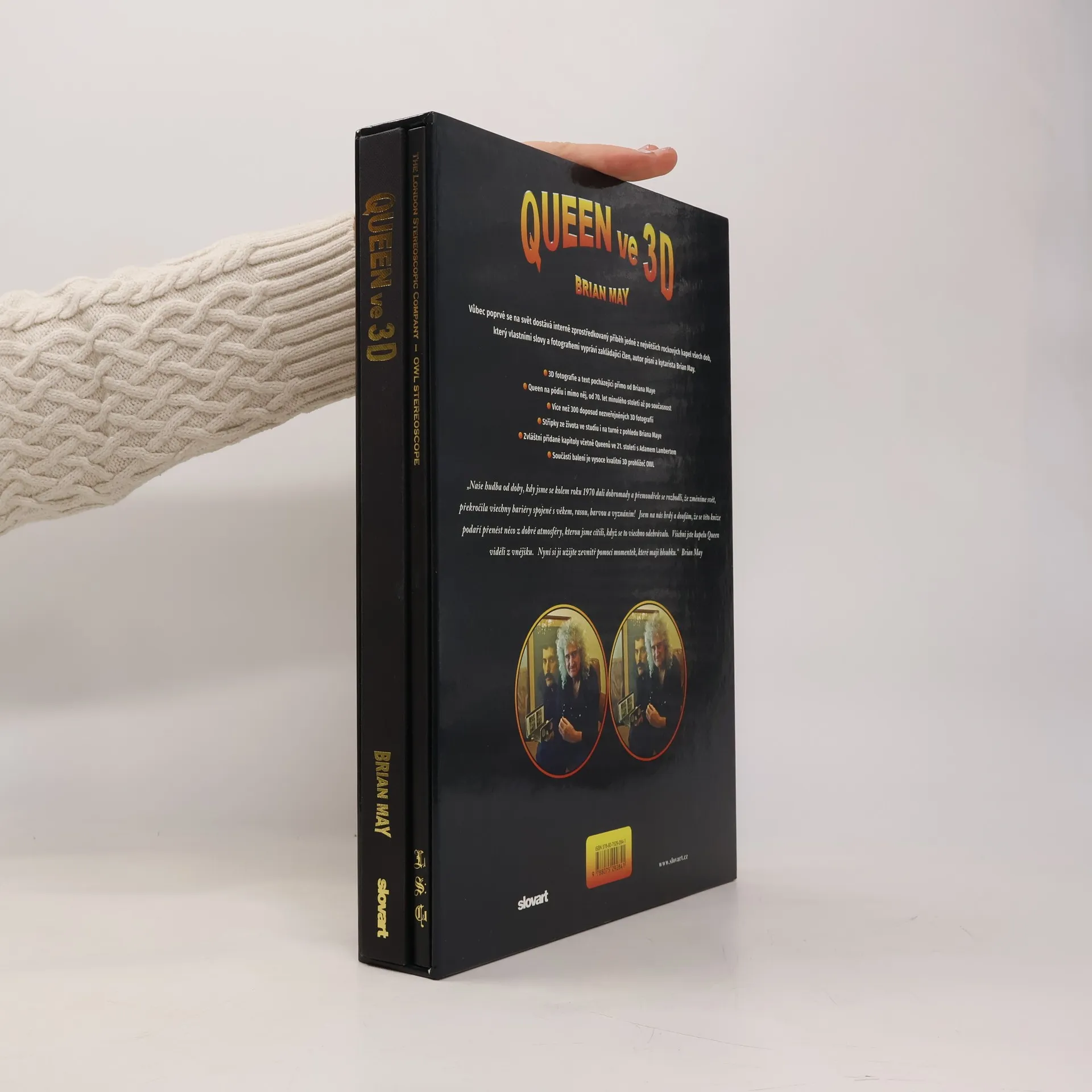 Vůbec poprvé se na svět dostává interně zprostředkovaný příběh jedné z největších rockových kapel všech dob, který vlastními slovy a fotografiemi vypráví zakládající člen, autor písní a kytarista Brian May. - 3D fotografie a text pocházející přímo od Briana Maye - Queen na pódiu i mimo ně, od 70. let minulého století až po současnost - více než 300 dosud nezveřejněných 3D fotografií - střípky ze života ve studiu i na turné z pohledu Briana Maye - kapitoly o Queen ve 21. století s Adamem Lambertem - součástí knihy je vysoce kvalitní 3D prohlížeč OWL