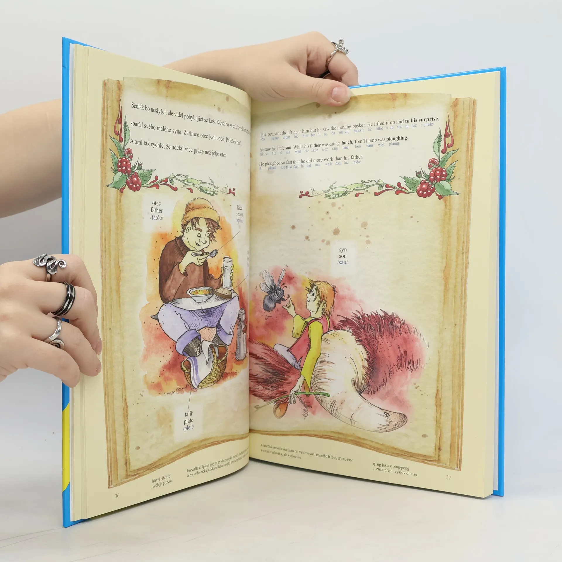 Tato kniha pohádek v české a anglické verzi je určena pro malé začátečníky, kteří dělají své první krůčky s angličtinou. Pohádky jsou převyprávěny jako stručné, jednoduché příběhy tak, aby anglická verze začátečníkům nedělala problémy. Velkou pomocí při osvojování si základů anglického jazyka pak bude kompletní fonetický přepis textů, a to jak samotných pohádek, tak i slovíček ve slovníčku a frází, které najdete za každou pohádkou. S pomocí rodičů je kniha vhodná i pro předškolní děti. S každou následující pohádkou se pak obtížnost a délka textu zvyšuje, takže s knihou mohou pracovat i děti, které si úplné základy anglického jazyka již částečně osvojily. Pojďme se tedy společně s hrdiny pohádek O Palečkovi, Jak jde vejce na vandr, Zlatovláska, O perníkové chaloupce a dalších naučit zábavnou formou řadu anglických slov a vět.