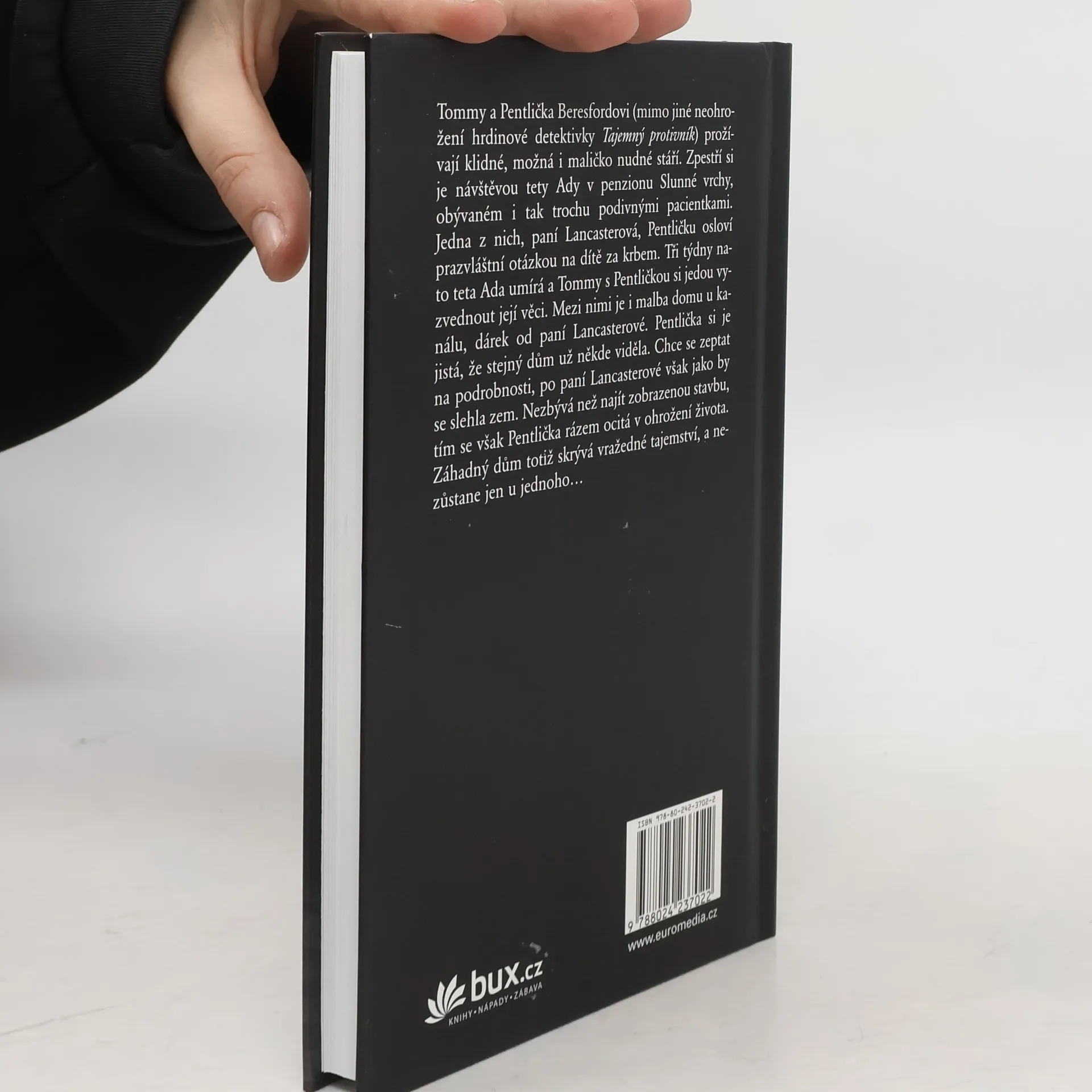 Tommy a Pentlička Beresfordovi (mimo jiné neohrožení hrdinové detektivky Tajemný protivník) si zpestří své maličko nudné stáří návštěvou tety Ady v penzionu Slunné vrchy. Jedna z jeho obyvatelek, paní Lancasterová, osloví Pentličku prazvláštní otázkou na dítě za krbem. Tři týdny nato teta Ada umírá. Tommy s Pentličkou najdou mezi jejími věcmi malbu domu u kanálu, dárek od paní Lancasterové. Pentlička si je jistá, že stejný dům už někde viděla. Chce se zeptat na podrobnosti, po paní Lancasterové však jako by se slehla zem. Nezbývá než najít zobrazenou stavbu, tím se však Pentlička rázem ocitá v ohrožení života.