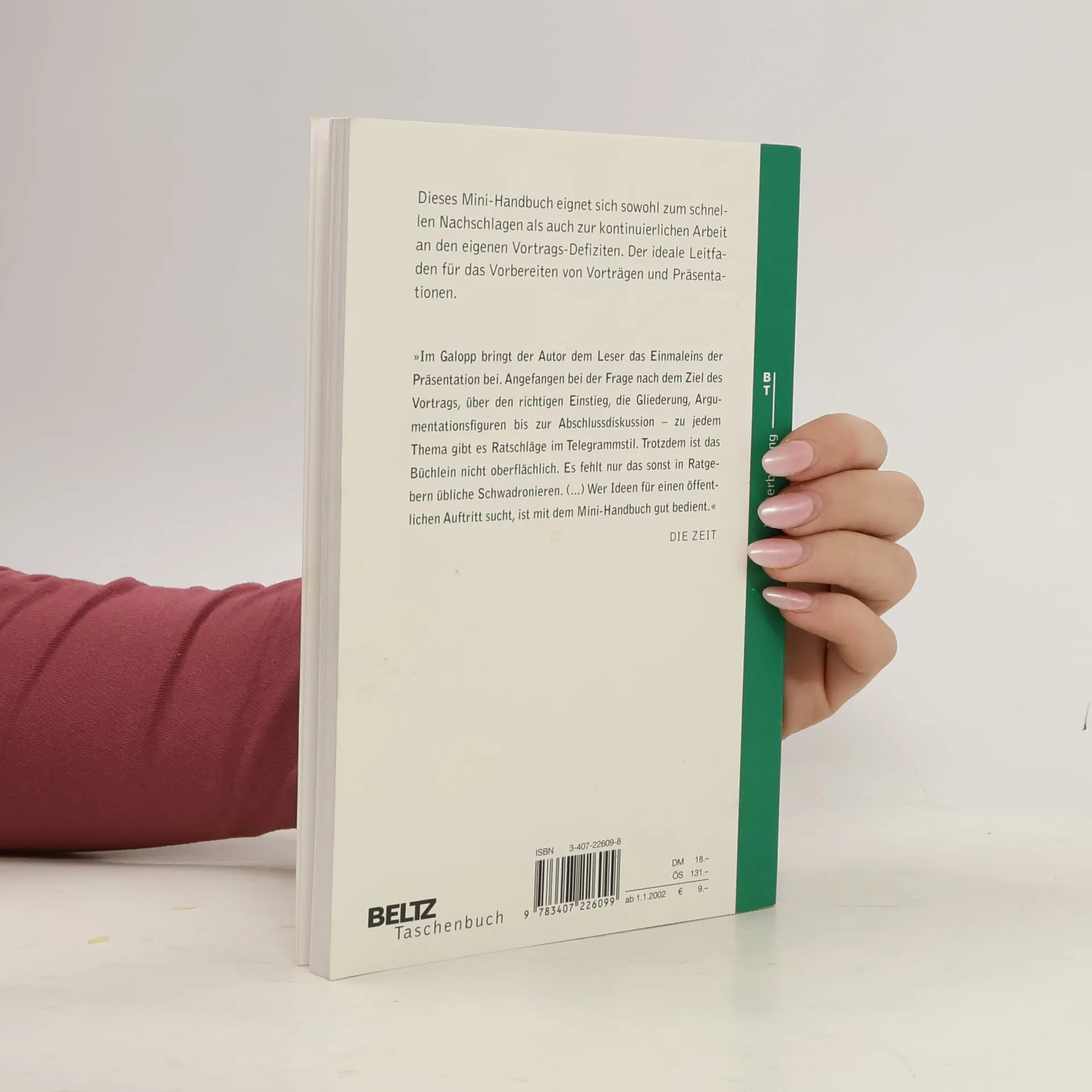 Jeder, der vorträgt, sollte zumindest dieses Mini-Handbuch einmal gelesen haben. Es lohnt sich! (Deutsche Apotheker Zeitung) Ein komprimierter Ratgeber für das Vorbereiten von Vorträgen oder Präsentationen. Häufig sind wohlwollende Kolleginnen und Kollegen gute Vortragsberater. Sie sind auch die idealen Opfer für einen Probevortrag. Wer auf sich alleine gestellt ist, aber bei der Vorbereitung nicht im eigenen Saft schmoren will, findet in diesem Mini-Handbuch einen idealen Leitfaden für seinen nächsten Auftritt vor Publikum. Schritt für Schritt werden den Lesern Konzeption, Aufbau und Medieneinsatz nahegebracht. Kurz und bündig stehen dort die wichtigsten Tipps und Kniffe für Präsentationen und Vorträge.