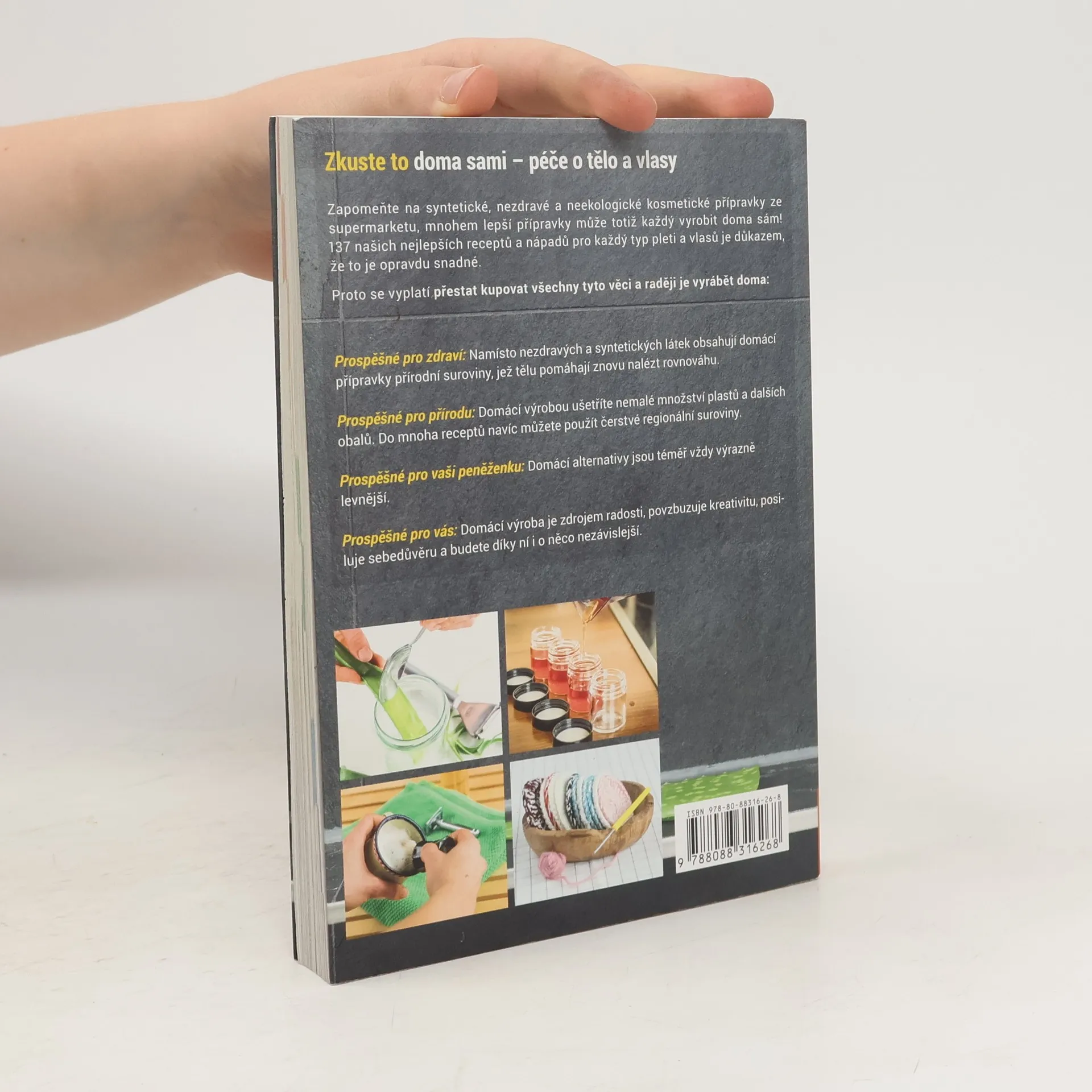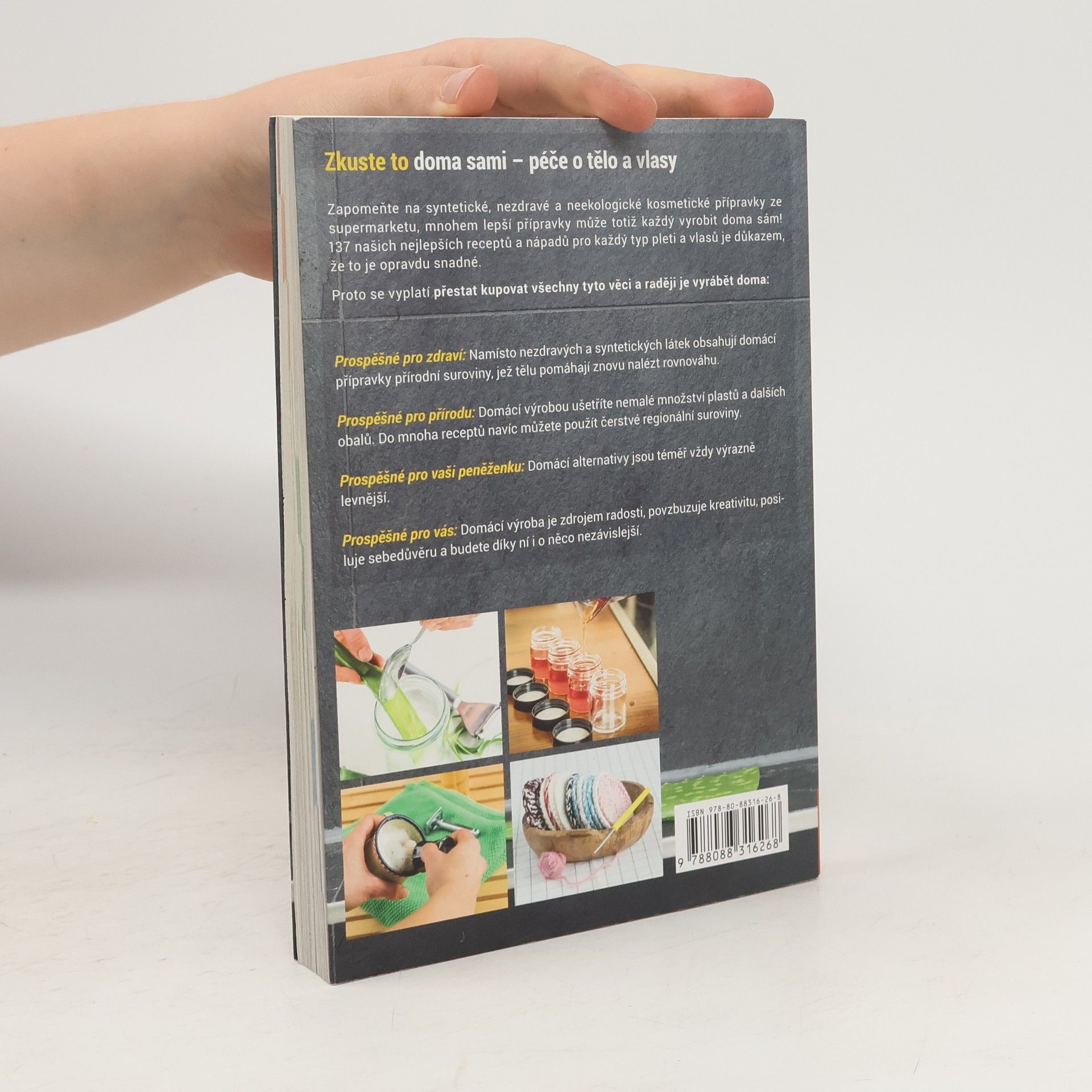 Zapomeňte na syntetické a nezdravé kosmetické přípravky ze supermarketu, protože mnohem lepší alternativy si můžete vyrobit doma! 137 receptů a nápadů pro různé typy pleti a vlasů dokazuje, že to je snadné. Domácí přípravky jsou prospěšné pro zdraví, neboť obsahují přírodní suroviny, které tělu pomáhají nalézt rovnováhu. Tímto způsobem také šetříte přírodu, protože domácí výrobou snižujete množství plastů a obalů, a můžete využít čerstvé regionální suroviny. Navíc jsou domácí alternativy většinou výrazně levnější, což je výhodné pro vaši peněženku. Výroba kosmetiky doma je také zdrojem radosti, podporuje kreativitu, posiluje sebedůvěru a zvyšuje nezávislost. V drogeriích najdete regály plné speciálních produktů, ale většina z nich obsahuje syntetické látky, které mohou vyvolávat alergie, rakovinu a další onemocnění. Tyto hotové výrobky přispívají k obrovskému množství obalového odpadu. Většinu těchto přípravků lze snadno nahradit domácími, udržitelnými alternativami. Pomocí zdravých, často jedlých přísad si můžete rychle vyrobit šampon, zubní pastu, masti, deodorant a další. Nechte se inspirovat a zlepšete svůj život!