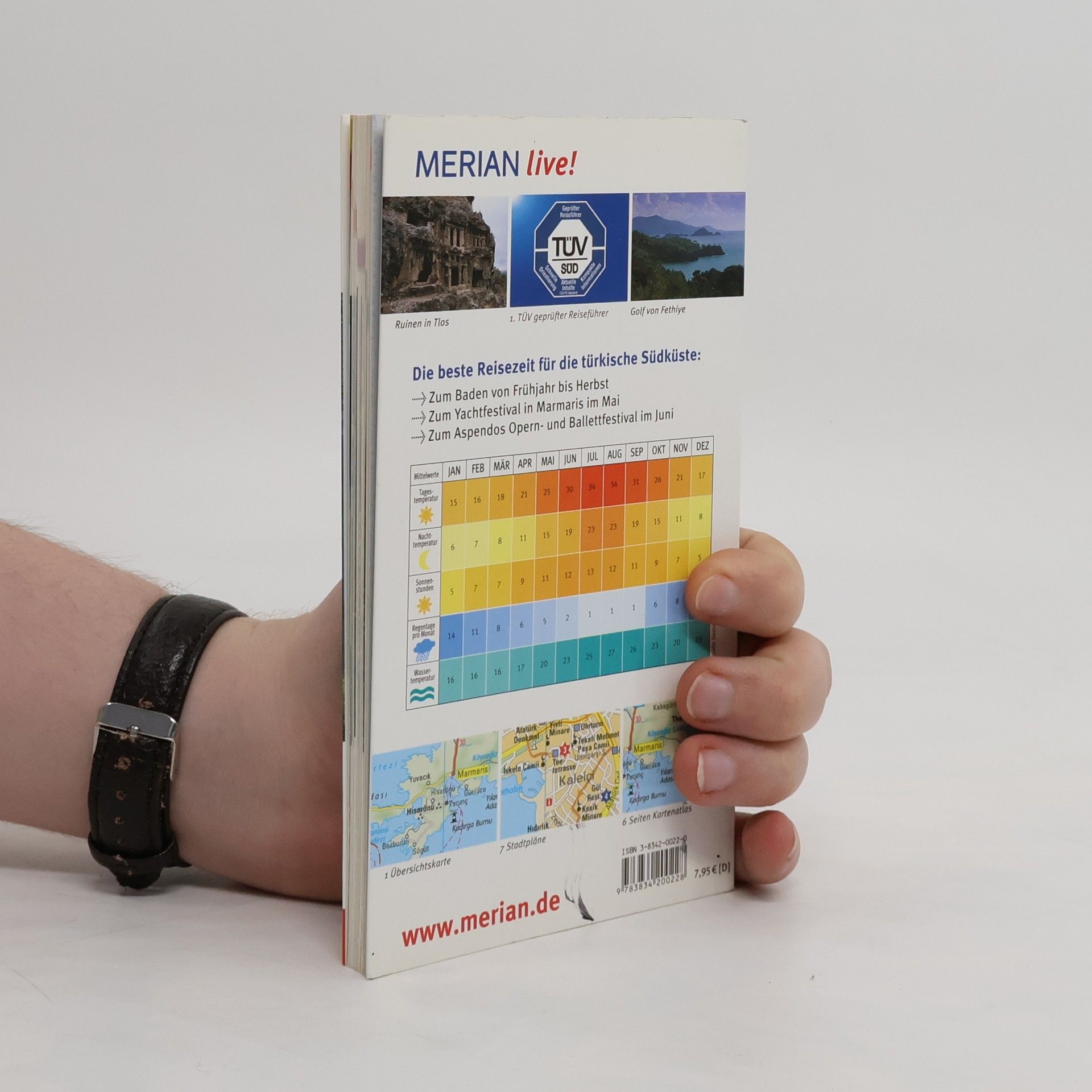 Mehrfach ausgezeichnet als bester Kompakt-Reiseführer: 1. Platz ITB BuchAward! Jetzt neu mit herausnehmbarer Straßenkarte zusätzlich zum Kartenatlas. Extra: MERIAN-Quiz mit Gewinnspiel! +++ Eine Auswahl aus dem Inhalt - Die schönsten Orte und Regionen: Der Südwesten - Marmaris, Dalyan, Fethiye, Kas + Antalya und Umgebung - Die Schöne im türkischen Süden + Alanya und Umgebung - Höhlen, Höfe, hohe Mauern + Der Osten - Silifke, Adana, Antakya / Hatay +++ Die 4 spannendsten Routen und Touren: Zur versunkenen Stadt bei der Insel Kekova - Abenteuer im Glasbodenschiff + Die Bergwildnis von Termessos - Theater, Mauern und Zisternen + Zur Burg Anamur - Römer, Piraten und Nomadenfürsten + Zu den Hethitern von Karatepe - Ein großartiges Freiluftmuseum +++ Ca. 60 Farbfotos, herausnehmbare Straßenkarte plus 6 Seiten Kartenatlas, 7 Stadtpläne, 1 Übersichtskarte, Sprachführer und Essdolmetscher, MERIAN-TopTen und MERIAN-Tipps +++ MERIAN-Spezial-Thema: Pamukkale - das weiße Wunder