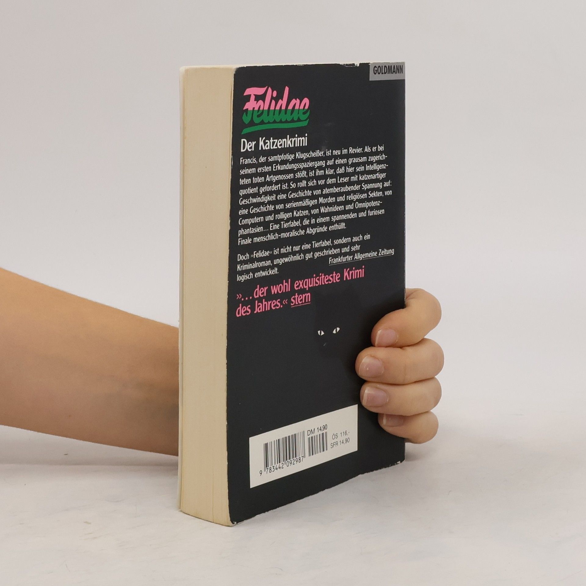 Francis, der samtpfotige Klugscheißer, ist neu im Revier. Als er bei seinem ersten Erkundungsspaziergang auf einen grausam zugerichteten toten Artgenossen stößt, ist ihm klar, daß hier sein Intelligenzquotient gefordert ist. So rollt sich vor dem Leser mit katzenartiger Geschwindigkeit eine Geschichte von serienmäßigen Morden und religiösen Sekten, von Computern und rolligen Katzen, von Wahnideen und Ommipotenzphantasien. Eine Tierfabel, die in einem spannenden und furiosen Finale menschlich-moralische Abgründe enthüllt.