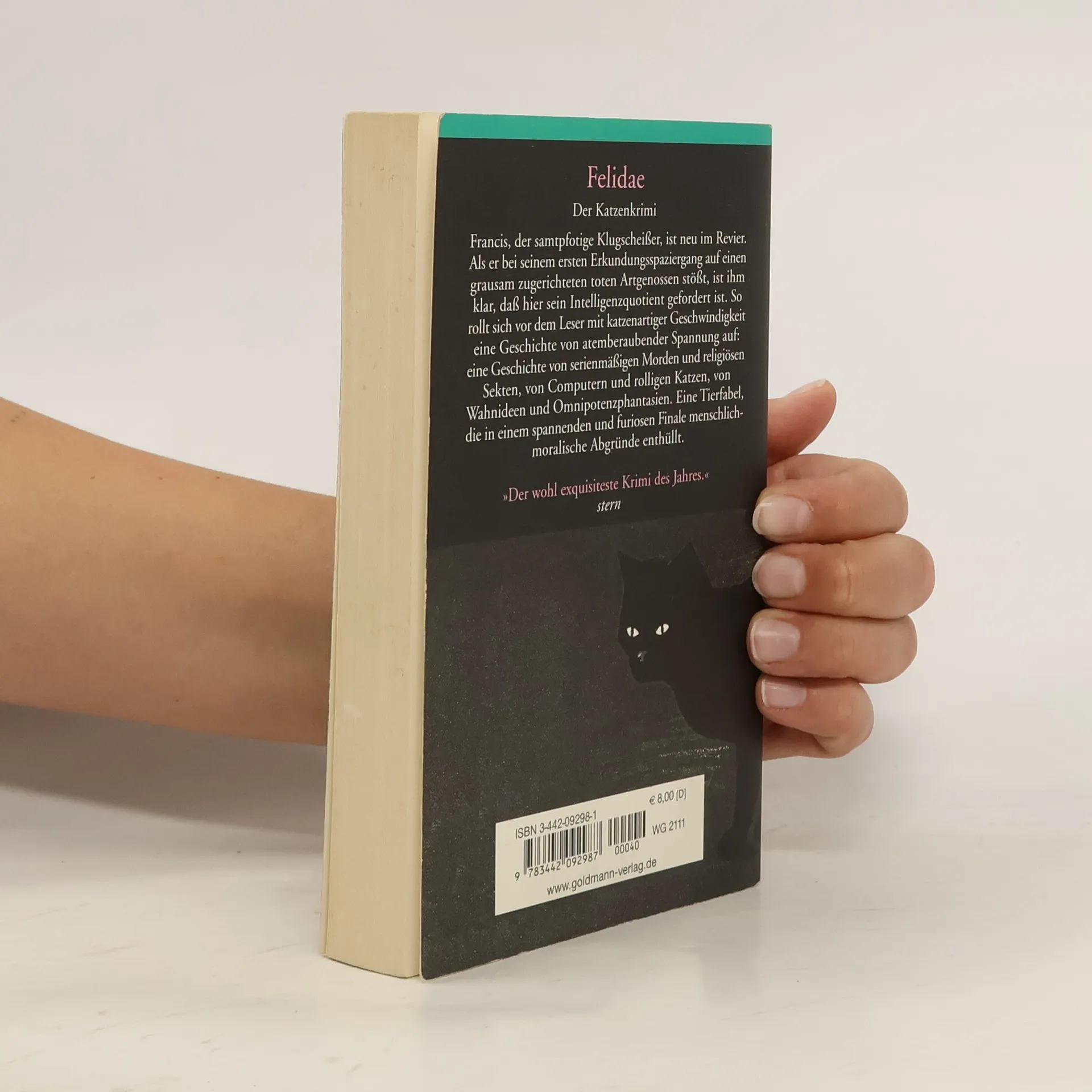 Francis, der samtpfotige Klugscheißer, ist neu im Revier. Als er bei seinem ersten Erkundungsspaziergang auf einen grausam zugerichteten toten Artgenossen stößt, ist ihm klar, daß hier sein Intelligenzquotient gefordert ist. So rollt sich vor dem Leser mit katzenartiger Geschwindigkeit eine Geschichte von serienmäßigen Morden und religiösen Sekten, von Computern und rolligen Katzen, von Wahnideen und Ommipotenzphantasien. Eine Tierfabel, die in einem spannenden und furiosen Finale menschlich-moralische Abgründe enthüllt.