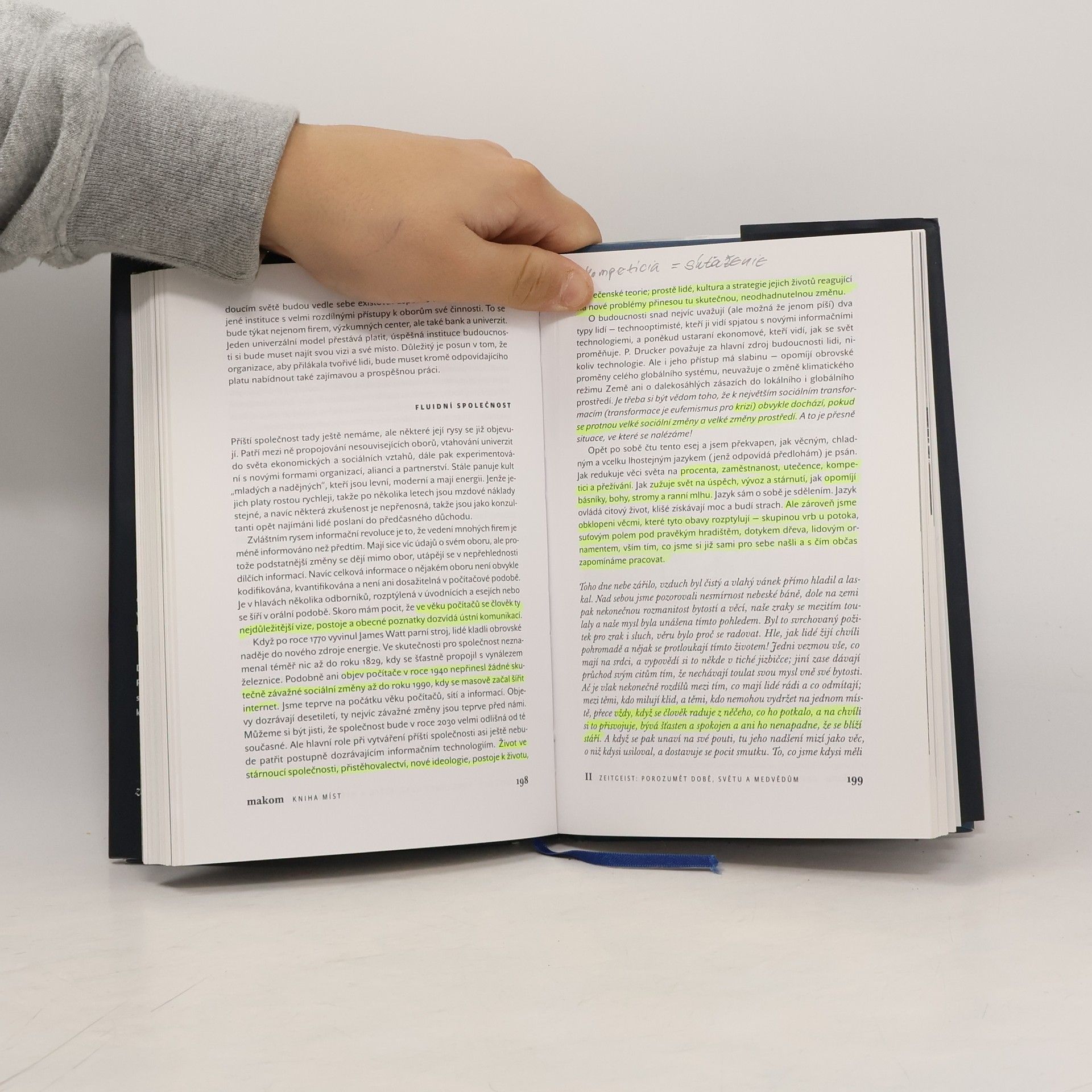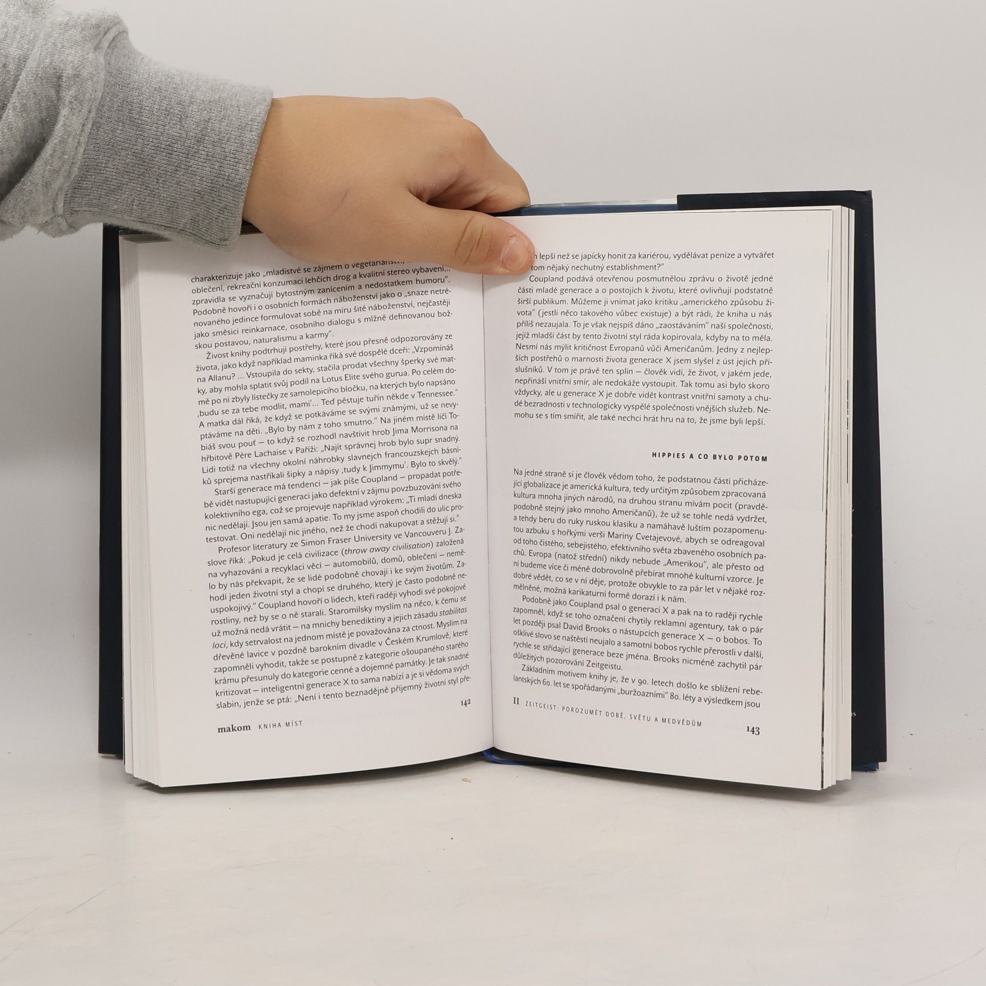 Slovo makom pochází z hebrejštiny. Znamená místo, ale je to spíš místo v srdci, protože vesmír jsou (jak se říká) hlavně vztahy. V kabale je význam slova makom ještě závažnější -představuje šesté nebe, kde se vše předurčuje. Uprostřed šestého nebe je temná propast Daat Berija, z níž vychází hlas, jenž dává poznání. Předkládaná kniha má prostší cíl. Navazuje na knihu o krajinách vnitřních a vnějších a v první části se obrací k reálným místům: k čarodějnému lesu u Kuksu, k paládiu ve Staré Boleslavi, k Vojtěšské huti na Kladně i k situacím, kdy Balkán je víc než celá Evropa. Ptáme se zde, kde žijeme a odkud pocházíme. V druhé části, nazvané Zeitgeist - duch doby, nás víc zajímá, v jaké době to vlastně žijeme a kam směřujeme. V části třetí, nazvané Bohové, buddhové a trpaslíci, se nám jedná zejména o trpaslíky, o to, co nás přesahuje a co vůbec nezapadá do každodenního života. Kniha byla nově rozšířena o čtvrtou část Poslední divočina.
