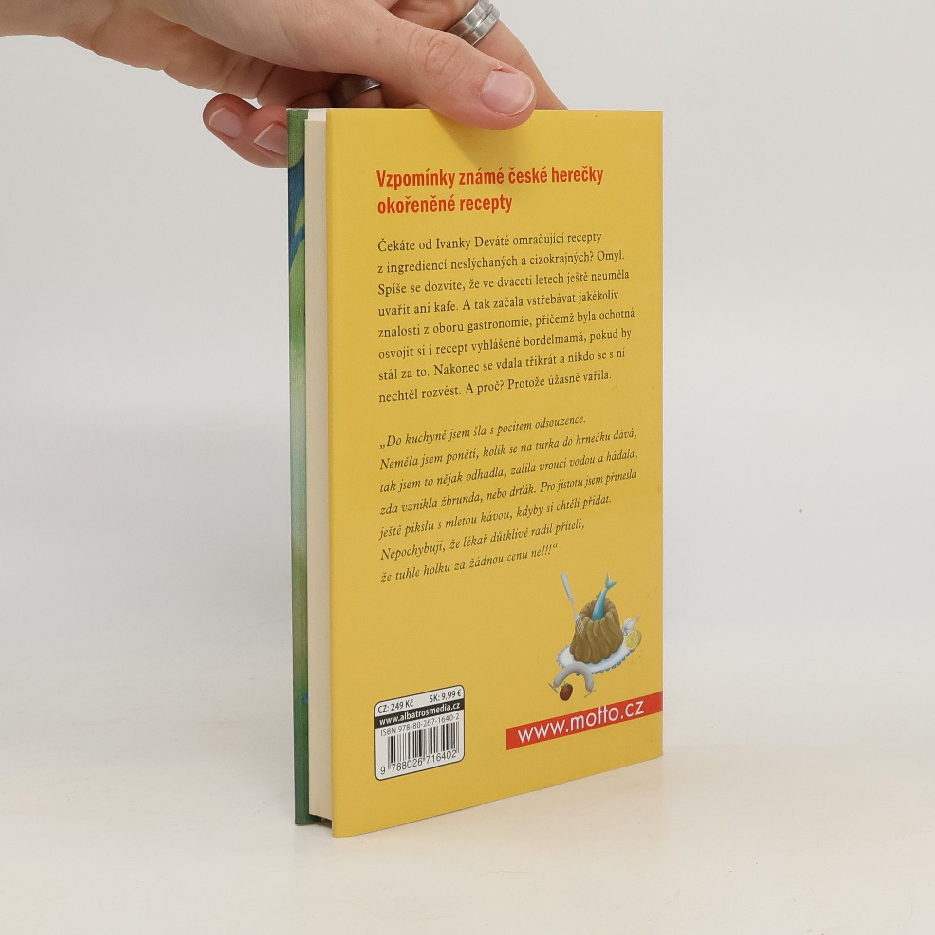 Čekáte od Ivanky Deváté omračující recepty z ingrediencí neslýchaných a cizokrajných? Omyl. Spíše se dozvíte, že ve dvaceti letech ještě neuměla uvařit ani kafe a jaké to bylo dobrodružství. A tak začala vstřebávat jakékoliv znalosti z oboru gastronomie, přičemž byla ochotná osvojit si recept i vyhlášené bordelmamá, pokud by stál za to. A hle, přesto se vdala třikrát a nikdo se s ní nechtěl rozvést. A proč? Protože úžasně vařila.