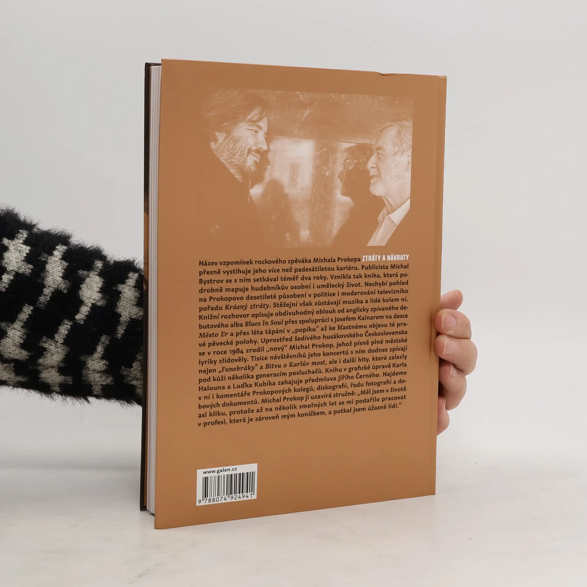 Název vzpomínek rockového zpěváka Michala Prokopa ZTRÁTY A NÁVRATY přesně vystihuje jeho více než padesátiletou kariéru. Publicista Michal Bystrov se s ním setkával téměř dva roky. Vznikla tak kniha, která podrobně mapuje hudebníkův osobní i umělecký život. Nechybí pohled na Prokopovo desetileté působení v politice i moderování televizního pořadu Krásný ztráty. Stěžejní však zůstávají muzika a lidé kolem ní. Knižní rozhovor opisuje obdivuhodný oblouk od anglicky zpívaného debutového alba Blues In Soul přes spolupráci s Josefem Kainarem na desce Město Er a přes léta tápání v „popíku“ až ke šťastnému objevu té pravé pěvecké polohy. Uprostřed šedivého husákovského Československa se v roce 1984 zrodil „nový“ Michal Prokop, jehož písně plné městské lyriky zlidověly. Tisíce návštěvníků jeho koncertů s ním dodnes zpívají nejen „Funebráky“ a „Bitvu o Karlův most“, ale i další hity, které zalezly pod kůži několika generacím posluchačů. Knihu v grafické úpravě Karla Halouna a Luďka Kubíka zahajuje předmluva Jiřího Černého. Najdeme v ní i komentáře Prokopových kolegů, diskografii, řadu fotografií a dobových dokumentů. Michal Prokop ji uzavírá stručně: „Měl jsem v životě asi kliku, protože až na několik smolných let se mi podařilo pracovat v profesi, která je zároveň mým koníčkem, a potkal jsem úžasné lidi.“