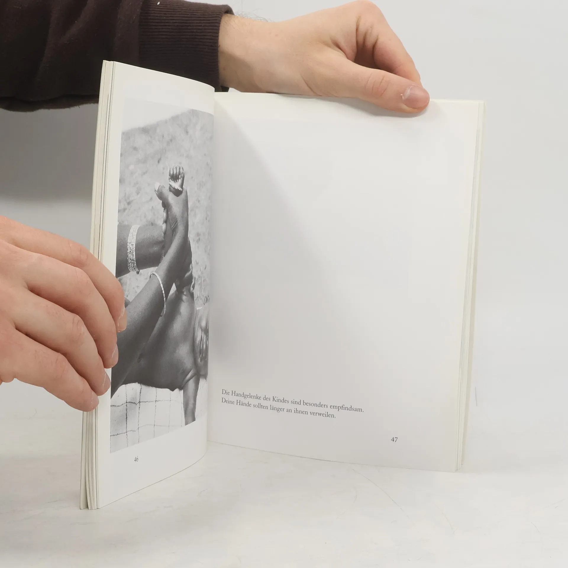 Die Berührung ist die Wurzel. Und so sollten wir mit ihr auch umgehen.Wir müssen unsere Babys so nähren, dass sie wirklich satt werden, innen wie außen.Wir müssen zu ihrer Haut sprechen und zu ihrem Rücken, denn diese hungern und dürsten und schreien genauso wie ihr Bauch.Wir müssen sie mit Wärme und Zärtlichkeit genug und mehr als genug füttern. Denn das brauchen sie, so sehr wie Milch.Berührt, gestreichelt und massiert werden, das ist Nahrung für das Kind. Nahrung, die genauso wichtig ist wie Mineralien, Vitamine und Proteine. Nahrung, die Liebe ist. Ausstattung: Mit 66 s/w-Fotos