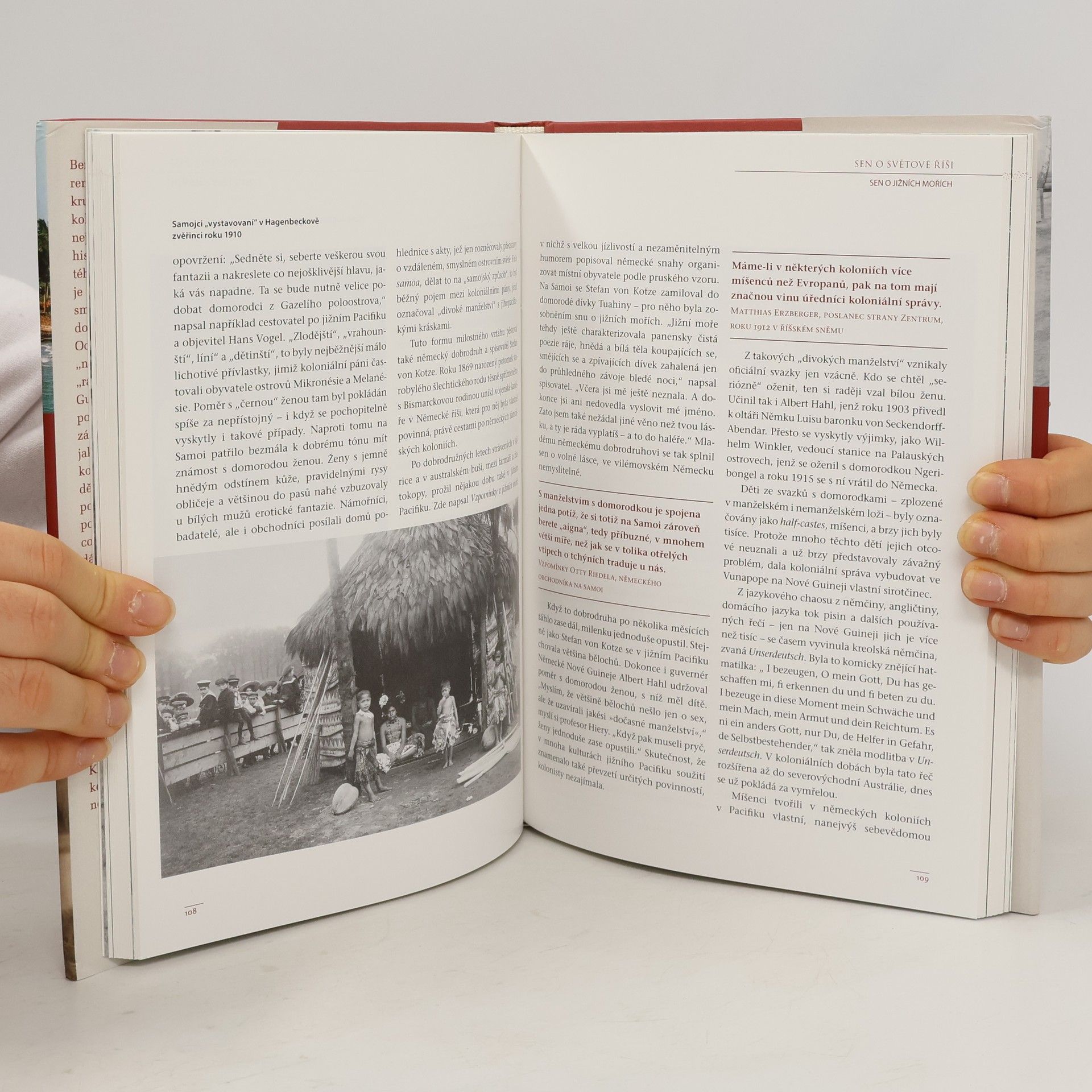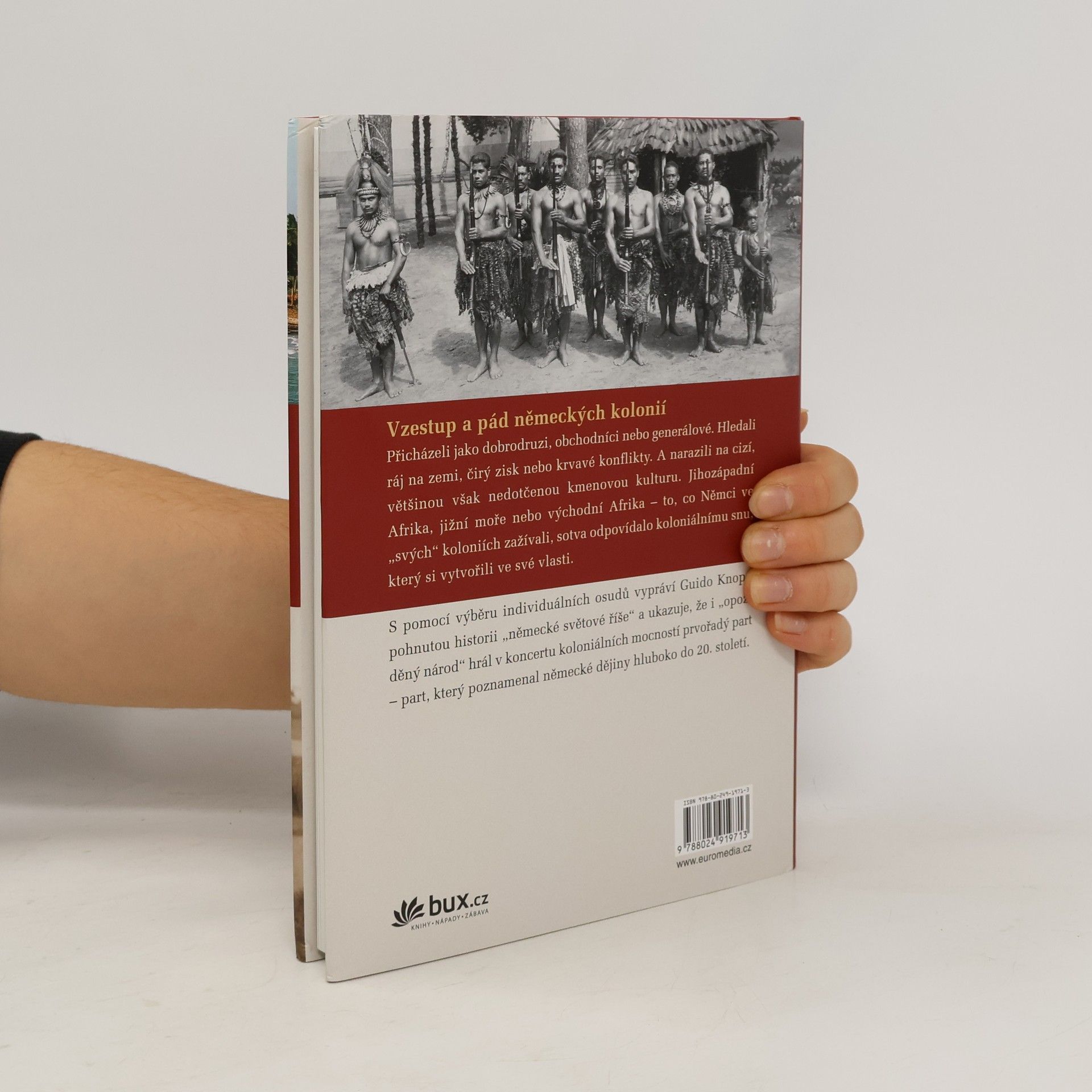 Přicházeli jako dobrodruzi, obchodníci nebo generálové. Hledali ráj na zemi, čirý zisk nebo krvavé konflikty. A narazili na cizí, většinou však nedotčenou kmenovou kulturu. Jihozápadní Afrika, jižní moře nebo východní Afrika – to, co Němci ve „svých“ koloniích zažívali, sotva odpovídalo koloniálnímu snu, který si vytvořili ve své vlasti. S pomocí výběru individuálních osudů vypráví Guido Knopp pohnutou historii „německé světové říše“ a ukazuje, že i „opožděný národ“ hrál v koncertu koloniálních mocností prvořadý part – part, který poznamenal německé dějiny hluboko do 20. století.