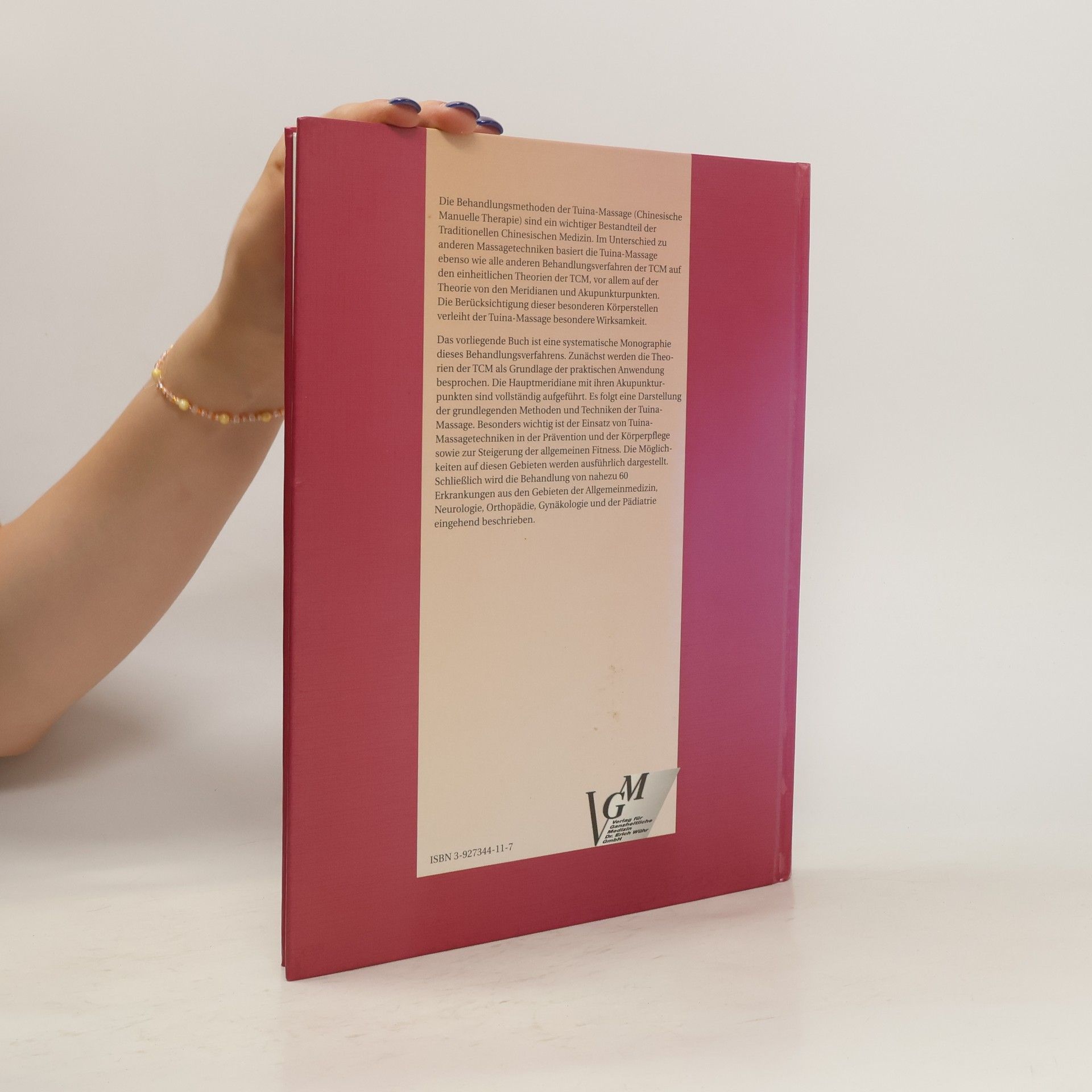 Die Behandlungsmethoden der Tuina-Massage (Chinesische Manuelle Therapie) sind ein wichtiger Bestandteil der Traditionellen Chinesischen Medizin. Im Unterschied zu anderen Massagetechniken basiert die Tuina-Massage ebenso wie alle anderen Behandlungsverfahren der TCM auf den einheitlichen Theorien der TCM, vor allem auf der Theorie von den Meridianen und Akupunkturpunkten. Die Berücksichtigung dieser besonderen Körperstellen verleiht der Tuina-Massage besondere Wirksamkeit. Das vorliegende Buch ist eine systematische Monographie dieses Behandlungsverfahrens. Zunächst werden die Theorien der TCM als Grundlage der praktischen Anwendung besprochen. Die Hauptmeridiane mit ihren Akupunkturpunkten sind vollständig aufgeführt. Es folgt eine Darstellung der grundlegenden Methoden und Techniken der Tuina-Massage. Besonders wichtig ist der Einsatz von Tuina-Massagetechniken in der Prävention und der Körperpflege sowie zur Steigerung der allgemeinen Fitness. Die Möglichkeiten auf diesen Gebieten werden ausführlich dargestellt. Schließlich wird die Behandlung von nahezu 60 Erkrankungen aus den Gebieten der Allgemeinmedizin, Neurologie, Orthopädie, Gynäkologie und der Pädiatrie eingehend beschrieben.