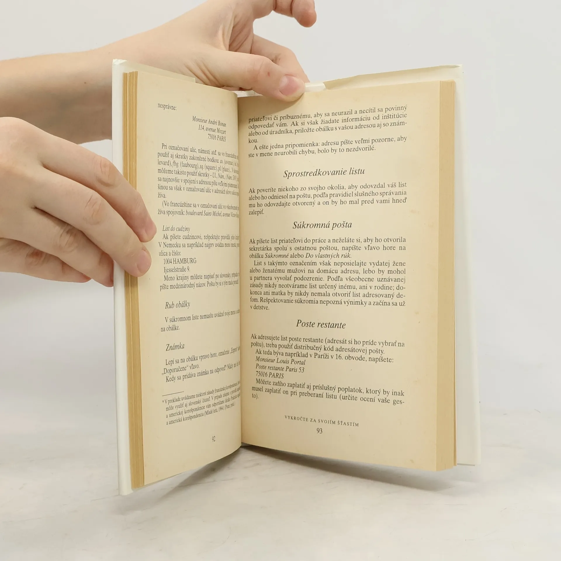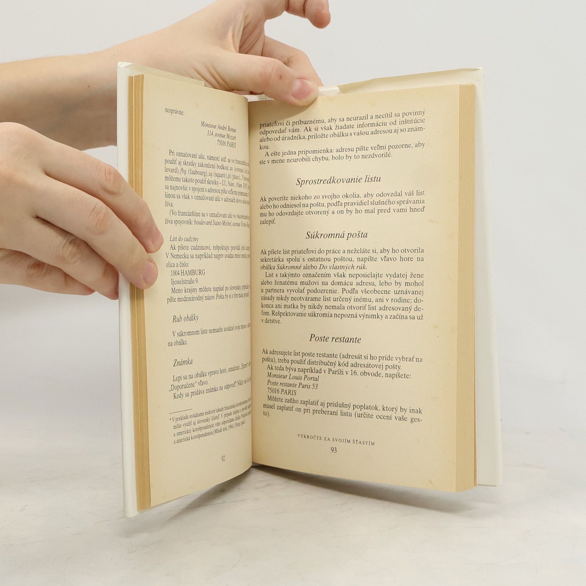 Tento originálny lexikón správania v spoločnosti a v živote vôbec je výnimočný z troch hľadísk: rozsahom preberaných tém, vtipným štýlom a množstvom drobných príbehov, no predovšetkým bytostne ženským prístupom k životu. Témy: I. Ako žiť sám so sebou, II. Ako žiť sám so svojou rodinou a s ostatnými, III. Ako hovoriť, telefonovať, písať, IV. Pravidlá spoločenského správania, V. Ako prijímať hostí a chodiť na návštevy, VI. Ako oslavovať veľké udalosti a rodinné sviatky, VII. Ako cestovať, VIII. Ako sa správať v cudzine.