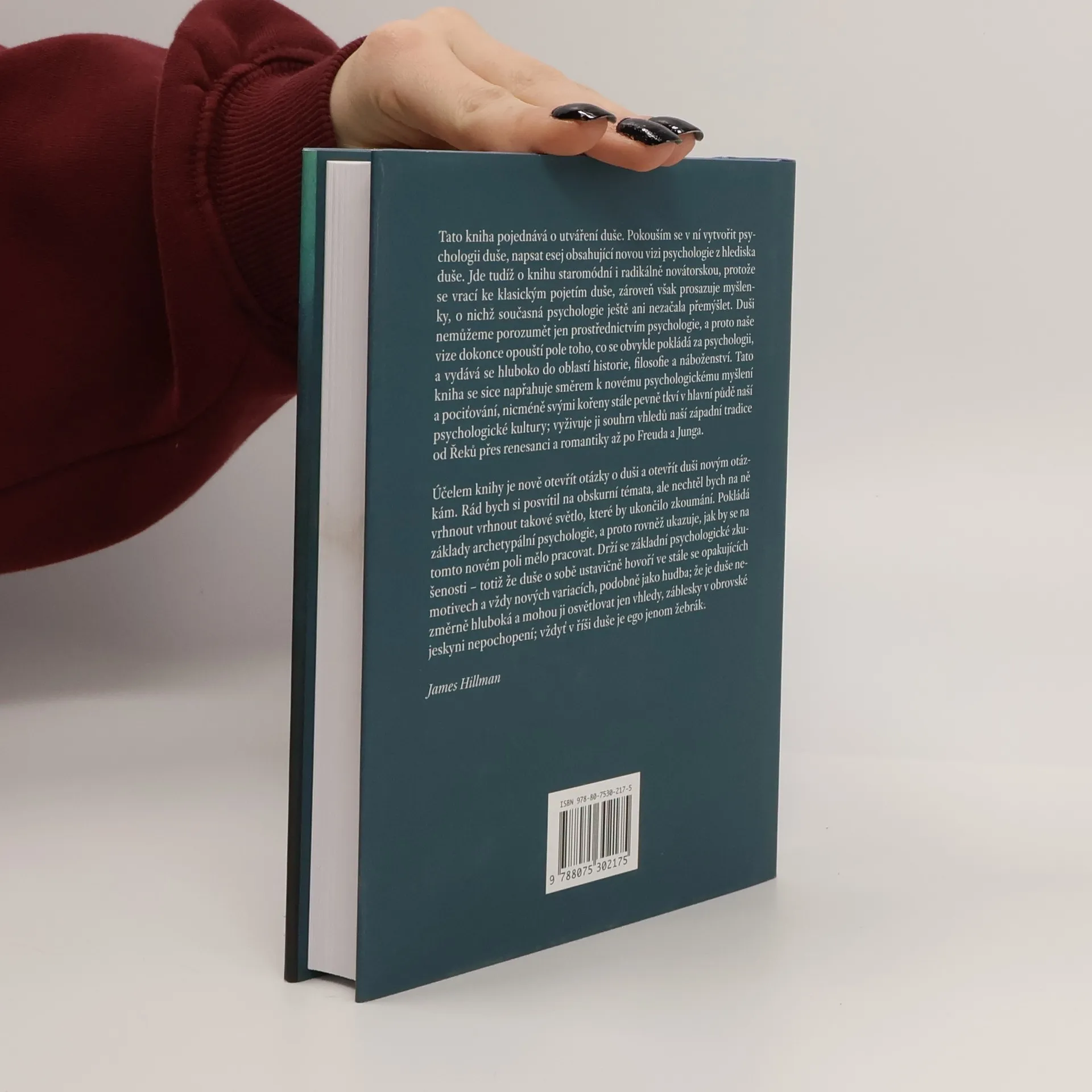 Tato kniha pojednává o utváření duše. Pokouším se v ní vytvořit psychologii duše, napsat esej obsahující novou vizi psychologie z hlediska duše. Jde tudíž o knihu staromódní i radikálně novátorskou, protože se vrací ke klasickým pojetím duše, zároveň však prosazuje myšlenky, o nichž současná psychologie ještě ani nezačala přemýšlet. Duši nemůžeme porozumět jen prostřednictvím psychologie, a proto naše vize dokonce opouští pole toho, co se obvykle pokládá za psychologii, a vydává se hluboko do oblastí historie, filosofie a náboženství. Tato kniha se sice napřahuje ve směru nového psychologického myšlení a pociťování, nicméně svými kořeny stále pevně tkví v hlavní půdě naší psychologické kultury; vyživují ji nahromaděné vhledy naší západní tradice od Řeků přes renesanci a romantiky až po Freuda a Junga. Účelem knihy je nově otevřít otázky o duši a otevřít duši novým otázkám. Rád bych si posvítil na obskurní témata, ale nechtěl bych na ně vrhnout ten typ světla, který má ukončit zkoumání. Tato kniha má položit základy archetypální psychologie, a proto rovněž ukazuje, jak by se na tomto novém poli mělo pracovat. Drží se základní psychologické zkušenosti – totiž že duše o sobě ustavičně hovoří ve stále se opakujících motivech a vždy nových variacích, podobně jako hudba; že je duše nezměrně hluboká a mohou ji osvětlovat jen vhledy, záblesky v obrovské jeskyni nepochopení; vždyť v říši duše je ego jenom žebrák.