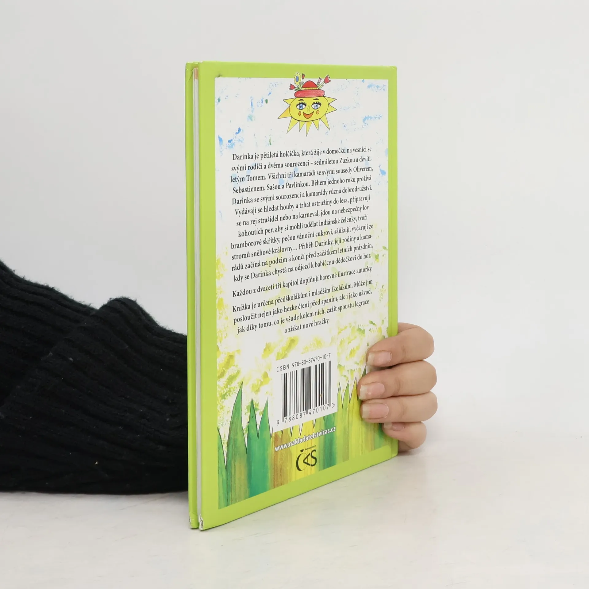 Darinka je pětiletá holčička, která žije v domečku na vesnici se svými rodiči a dvěma sourozenci – sedmiletou Zuzkou a devítiletým Tomem. Všichni tři kamarádí se svými sousedy Oliverem, Sebastienem, Sašou a Pavlínkou. Během jednoho roku prožívá Darinka se svými sourozenci a kamarády různá dobrodružství. Vydávají se hledat houby a trhat ostružiny do lesa, připravují se na rej strašidel nebo na karneval, jdou na nebezpečný lov kohoutích per, aby si mohli udělat indiánské čelenky, tvoří bramborové skřítky, pečou vánoční cukroví, sáňkují, vyčarují ze stromů sněhové královny… Příběh Darinky, její rodiny a kamarádů začíná na podzim a končí před začátkem letních prázdnin, kdy se Darinka chystá na odjezd k babičce a dědečkovi do hor. Každou z dvaceti tří kapitol doplňují barevné ilustrace autorky. Knížka je určena předškolákům i mladším školákům. Může jim posloužit nejen jako hezké čtení před spaním, ale i jako návod, jak díky tomu, co je všude kolem nich, zažít spoustu legrace a získat nové hračky.