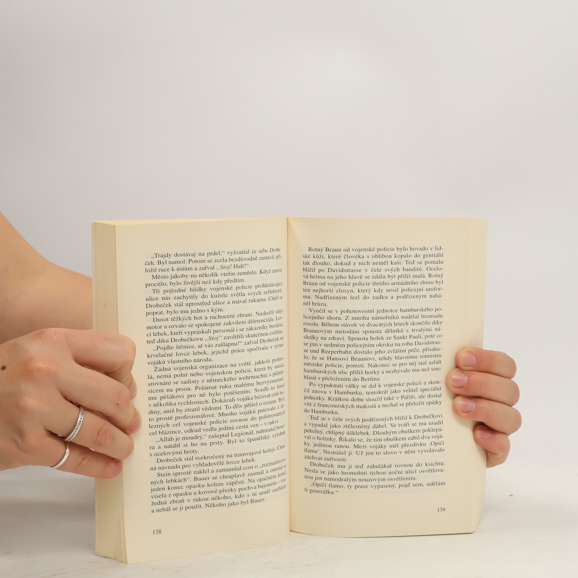 Hrdina má větší štěstí než mnoho jeho spolubojovníků: z východní fronty se na rozdíl od nich vrací, byť lazaretním vlakem s omrzlinami druhého stupně. Cesta do Krakova, již absolvuje společně s Drobečkem trvá dvanáct dnů, a transport přežije jenom třetina zraněných. Poté se oba přátelé léčí v hamburské nemocnici, vymetají bordely a putyky a hrdina se seznamuje s důstojnickou paničkou Gizelou. Odmítají režim, který je nutí bojovat až do hořkého konce bez ohledu na lidské životy, což vede k řadě střetnutí s vojenskou policií. Jednou z bestií v lidské podobě je obrovitý rotný Braun, jehož nakonec Drobeček zaškrtí kusem ocelového drátu. Příjemný život v zázemí však nemůže trvat věčně a oba přátele čeká transport zpět do válečného běsnění. Opět se ocitají na východní frontě a opět jim jde o život - německou armádu decimují ruské tankové a letecké útoky, které Hassel dokáže barvitě popsat. Krutá a nesmyslná válka stále ještě pokračuje.
