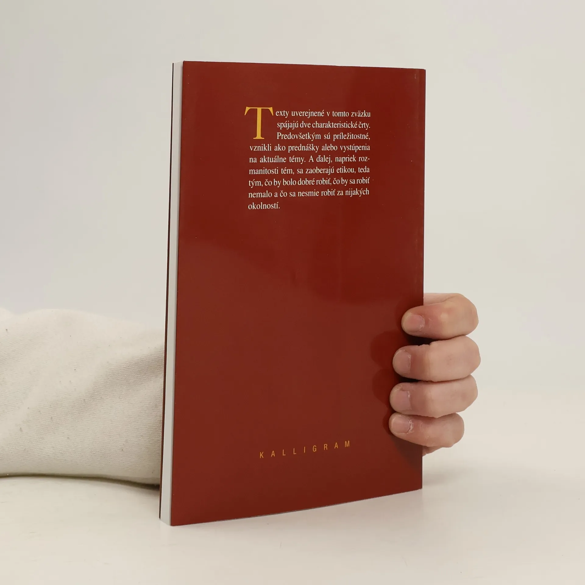 Texty uverejnené v tomto zväzku vznikli ako prednášky na aktuálnu tému. Zaoberajú sa etikou, teda tým, čo by bolo dobré robiť, čo by sa robiť nemalo a čo sa nesmie robiť za nijakých okolností.