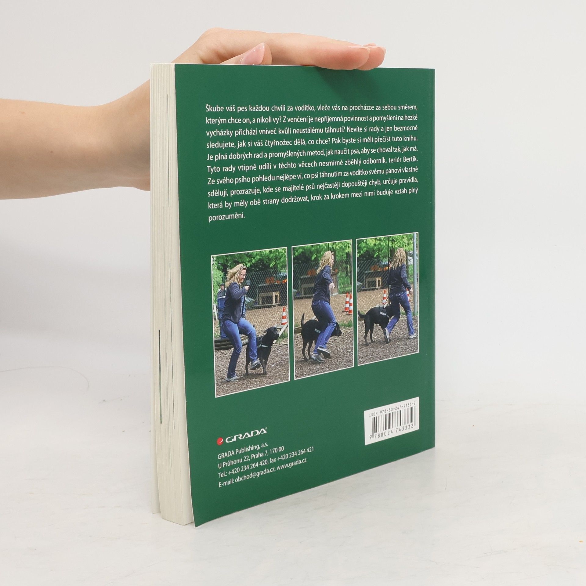 Škube váš pes každou chvíli za vodítko, vleče vás na procházce za sebou směrem, kterým chce on, a nikoli vy? Z venčení je nepříjemná povinnost a pomyšlení na hezké vycházky přichází vniveč kvůli neustálému táhnutí? Nevíte si rady a jen bezmocně sledujete, jak si dělá venku, co chce? Pak byste si měli přečíst tuto knihu. Je plná dobrých rad a promyšlených metod, jak naučit psa, aby se choval tak, jak má. Tyto rady vtipně udílí v těchto věcech nesmírně zběhlý odborník, teriér Bertík. Ze svého psího pohledu nejlépe ví, co psi táhnutím za vodítko svému pánovi vlastně sdělují, prozrazuje, kde se majitelé psů nejčastěji dopouštějí chyb, určuje pravidla, která by měly obě strany dodržovat, krok za krokem mezi nimi buduje vztah plný porozumění. Kniha je plná barevných návodných fotografií a schémat.