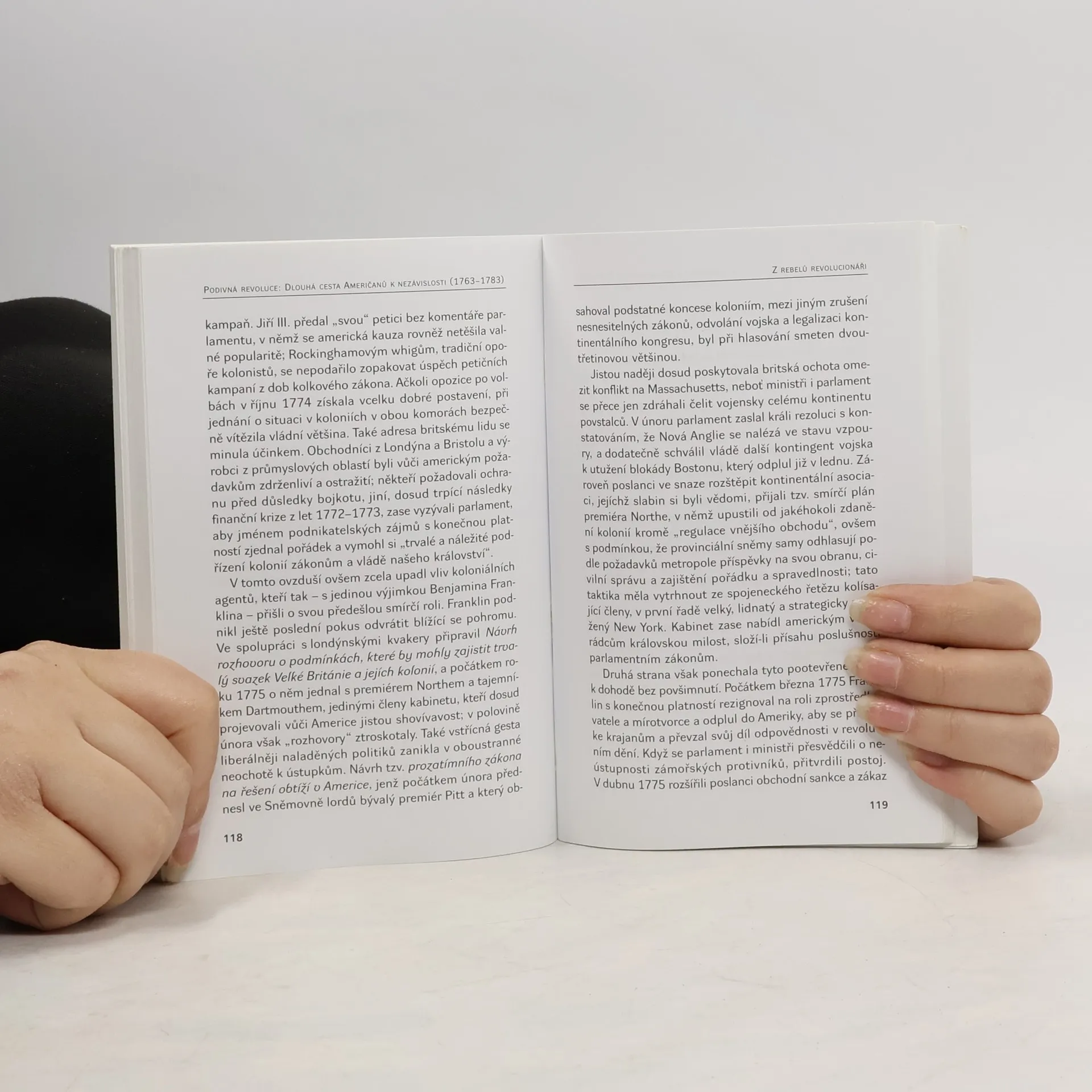 Kniha dává odpověď na otázku, proč se uprostřed všeobecného optimismu po vyhrané válce nad Francií 1763 začaly uvnitř americké společnosti vršit pocity nespokojenosti, křivdy a vzdoru do té míry, že nakonec přivedly různorodý a dotud protichůdnými zájmy rozdělený národ k ozbrojené vzpouře a zbavení se ochranných křídel mocného Britského impéria. Anatomie jednotlivých fází revoluce zachycuje šíři společenského spektra od postavení obyčejných lidí přes skupinové zájmy až po chování elit, sleduje proces vtahování jednotlivých vrstev do revolučního kvasu a snaží se nalézt souvislost mezi vnitřními zdroji napětí a podrážděnou reakcí na vcelku malicherné podněty, přicházející z Londýna. Americká revoluce se v této perspektivě jeví jako drama souhry okolností, jehož vyústění dodnes překvapuje historiky nepoměrem mezi vcelku omezenými příčinami a dalekosáhlými světodějnými důsledky.