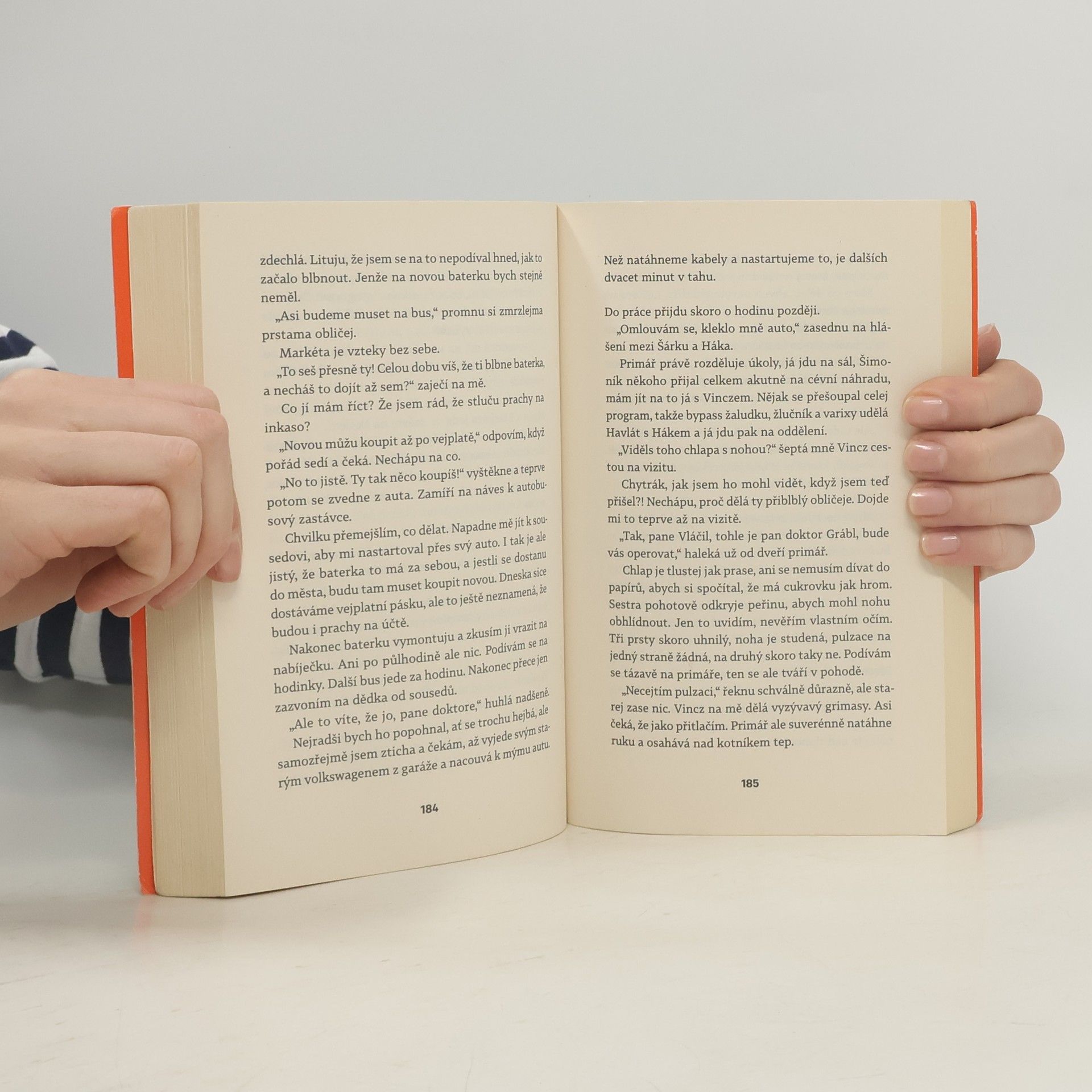 Před sebou neutečeš! „Nedokážu být ani rovnej, ani křivej. Můj život se rozlomil vejpůl a já už nečekám žádný pevný lano, který mě bude jistit,“ přemítá MUDr. Hynek Grábl, chirurg v příhraniční nemocnici, který už ani nedoufá, že by se jeho život ještě někdy mohl vyvíjet příznivěji. Kariéra špičkového odborníka na pražské klinice předčasně skončila kvůli jednomu karambolu s alkoholem a následky teď musí nést nejen on, ale i jeho věčně nespokojená žena a dospívající děti. Životní ani finanční účetnictví nevykazují příznivou bilanci a na horizontu zítřka se objevují všechny symptomy krize středního věku. Gráblova snaha nalézt východisko se však podobá spíš jízdě na horské dráze a často končí kocovinou. Pomůže mu milovaná profese, milenka nebo nová šance vrátit se k zajímavé operativě a kariérně růst? Na operačním sále i mimo něj se občas dá jen těžko poznat, kdo jakou hru hraje, kdo je vítěz a kdo poražený a kam povede další cesta. Hynkovi G. často nezbývá než věřit, že se nepotopí na úplné dno.