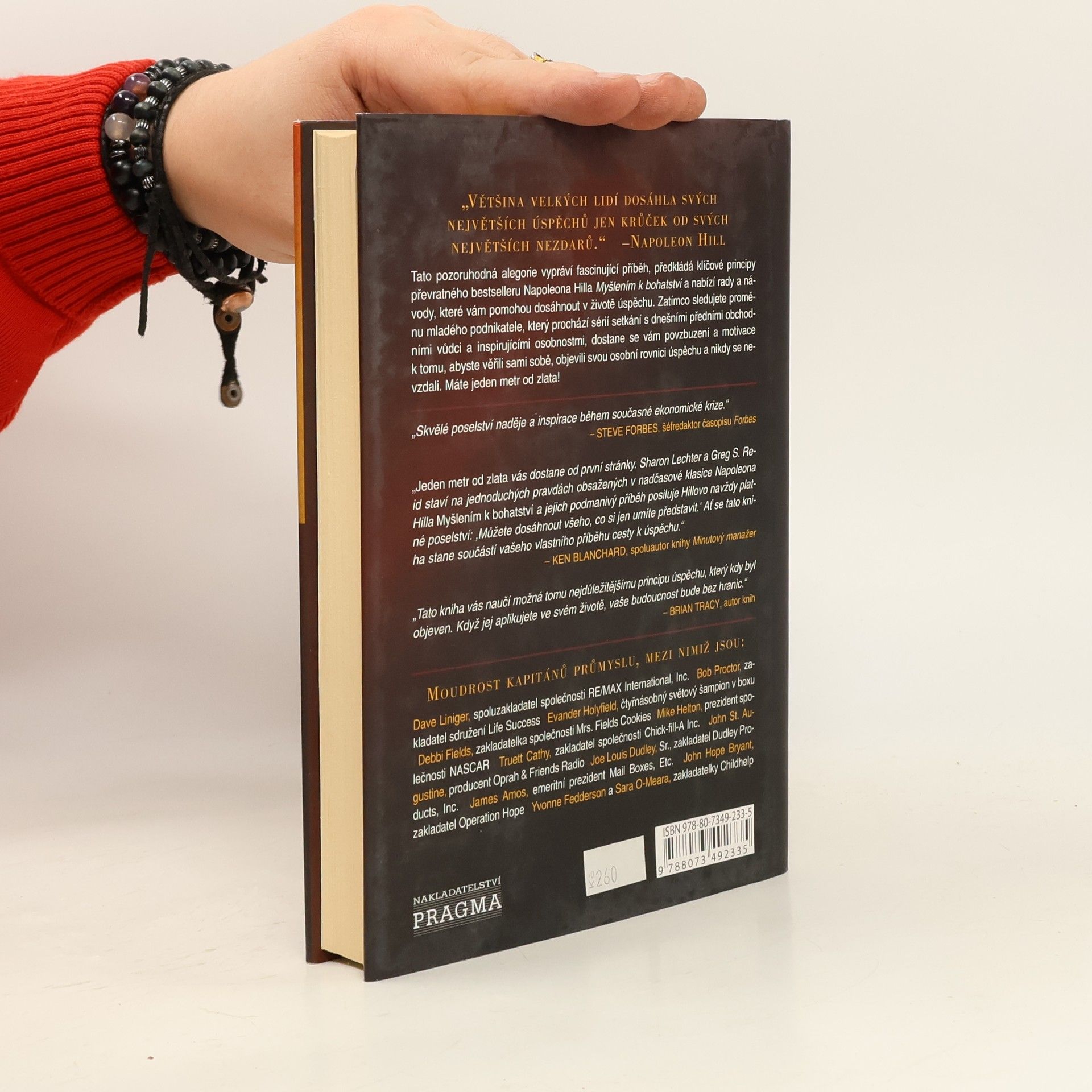 Tato pozoruhodná alegorie vypráví fascinující příběh, předkládá klíčové principy převratného bestselleru Napoleona Hilla Myšlením k bohatství a nabízí rady a návody, které vám pomohou dosáhnout v životě úspěchu. Zatímco sledujete proměnu mladého podnikatele, který prochází sérií setkání s dnešními předními obchodními vůdci a inspirujícími osobnostmi, dostane se vám povzbuzení a motivace k tomu, abyste věřili sami sobě, objevili svou Osobní rovnici úspěchu a nikdy se nevzdali. Máte jeden metr od zlata! V knize Sharon L. Lechter a Greg S. Reid sepsali pozoruhodnou alegorii se silným poselstvím, jež rezonuje zejména v době ekonomického poklesu; nikdy se nevzdávejte, možná máte jeden metr od zlata - ten největší úspěch vašeho života. Nejenže vás tato kniha inspiruje k tomu, abyste věřili v sebe sama, ale nabídne vám i nedocenitelnou rovnici osobního úspěchu vycházející z rad předních podnikatelů. V knize naleznete i praktický instruktážní program, který vám pomůže najít svou vlastní cestu k úspěchu. (vytrvalost přináší úspěch)