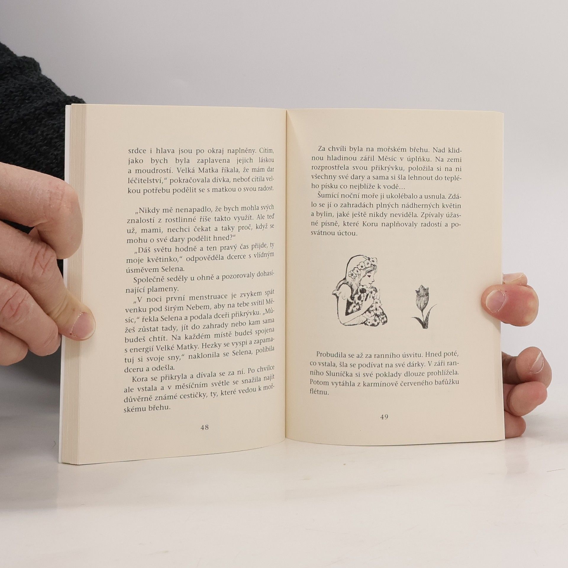 Dívka Kora, přátelící se s delfínem, prochází vnitřními biologickými změnami za účasti moudrých žen. V období prvních měsíčků přijímá duchovní poučení o posvátnosti ženství. Menarche, první menstruace, je pro dívky tajemnou bránou do nové etapy života, kdy se stávají ženami a matkami, prostorem pro růst nového života. Každá dívka by měla mít průvodce, kteří jí pomohou na této cestě – matku a starší ženy. Avšak mnohé ženy neměly možnost sdílet své zkušenosti, což v moderním světě vytváří pocity osamělosti a pochyb. Každý z nás si tak skládá mozaiku svého života, i když často chaoticky. Tato knížka může být jedním z dílků této mozaiky, zejména pro ženy. Kora prožívá velkou změnu ve svém životě, svou menarche, a vedle ní stojí její milující maminka Selena a čtyři staré moudré průvodkyně, které ji uvádějí do nového období. Kora symbolizuje každou dívku a ženu, čekající na zasvěcení do posvátných moudrostí a naplnění svých vnitřních touh. Rozkvétající ženo, blíží se tvá velká doba – doba měsíčků, čas požehnání, síly a tvořivosti. Oslavuj ji radostně a vděčně.
